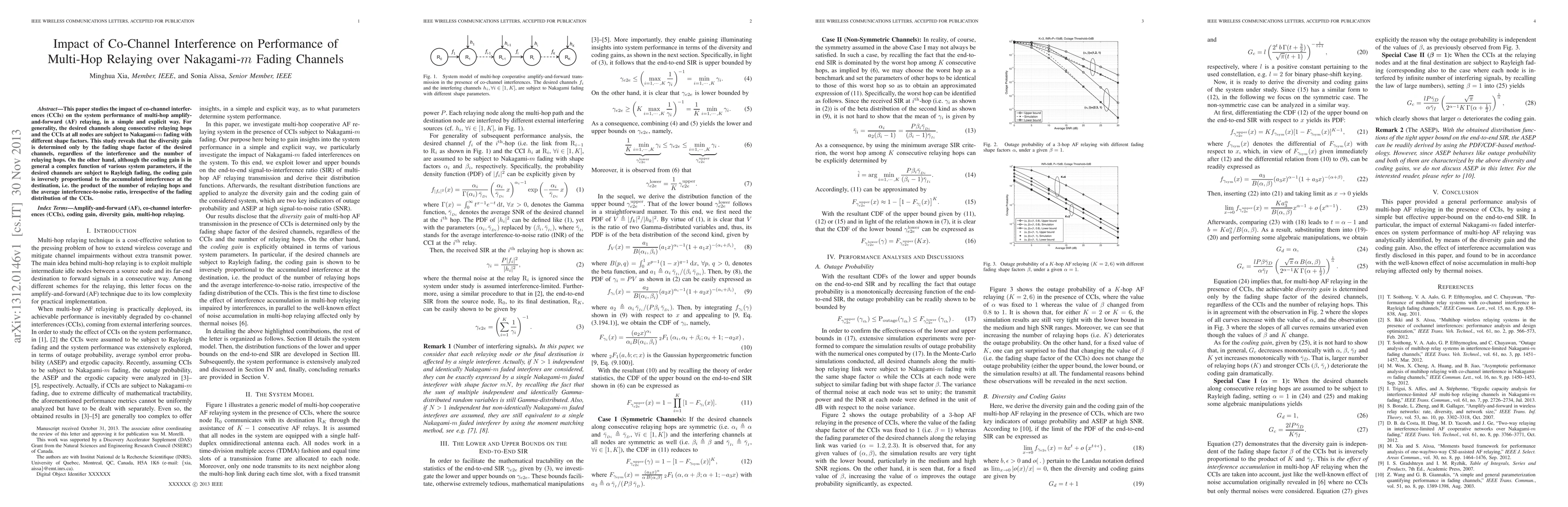 This paper investigates how co-channel interference affects the performance of multi-hop relaying systems under Nakagami-$m$ fading conditions. It finds that diversity gain depends solely on the desired channel's fading shape factor, while coding gain inversely correlates with accumulated interference at the destination when the channels follow Rayleigh fading.