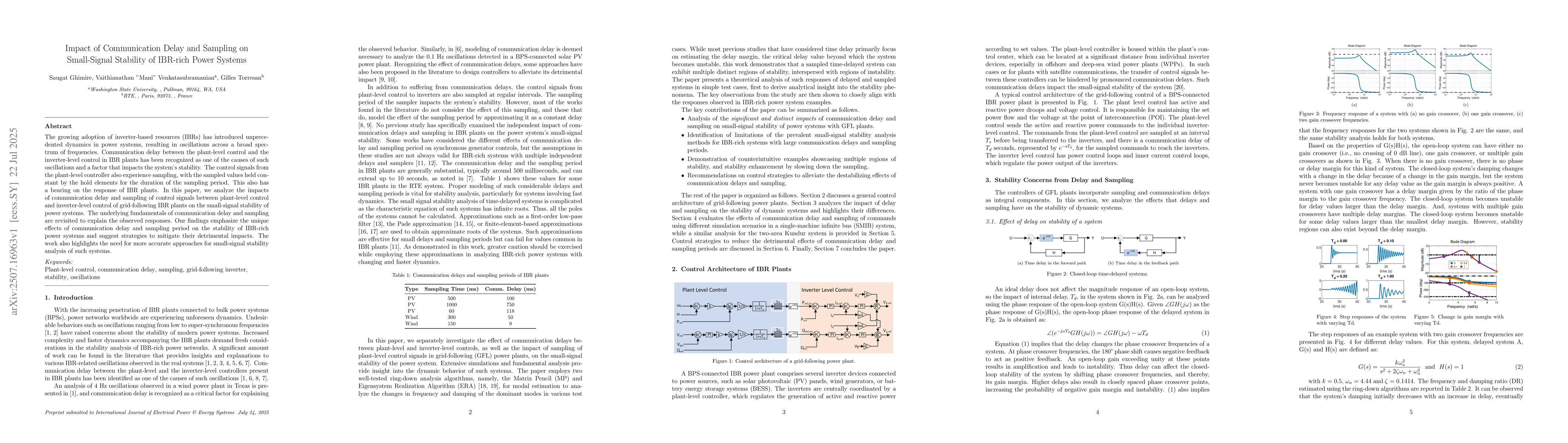 The growing adoption of inverter-based resources (IBRs) has introduced unprecedented dynamics in power systems, resulting in oscillations across a broad spectrum of frequencies. Communication delay between the plant-level control and the inverter-level control in IBR plants has been recognized as one of the causes of such oscillations and a factor that impacts the system's stability. The control signals from the plant-level controller also experience sampling, with the sampled values held constant by the hold elements for the duration of the sampling period. This also has a bearing on the response of IBR plants. In this paper, we analyze the impacts of communication delay and sampling of control signals between plant-level control and inverter-level control of grid-following IBR plants on the small-signal stability of power systems. The underlying fundamentals of communication delay and sampling are revisited to explain the observed responses. Our findings emphasize the unique effects of communication delay and sampling period on the stability of IBR-rich power systems and suggest strategies to mitigate their detrimental impacts. The work also highlights the need for more accurate approaches for small-signal stability analysis of such systems.