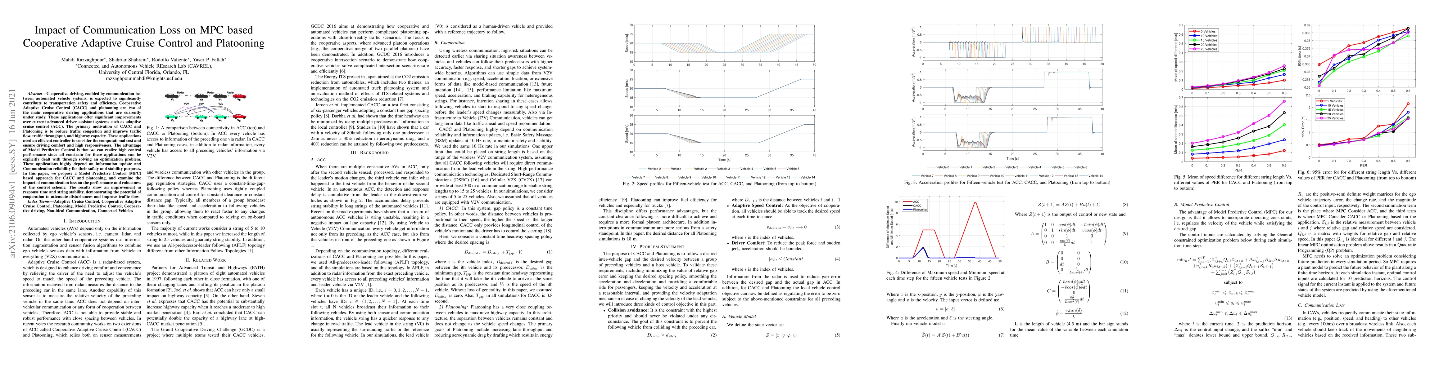 This paper proposes a Model Predictive Control (MPC) based approach for Cooperative Adaptive Cruise Control (CACC) and platooning, analyzing the impact of communication loss on performance and robustness. The study finds that communication loss can adversely affect response time and string stability, but cooperative driving still offers benefits in traffic flow and congestion reduction.
