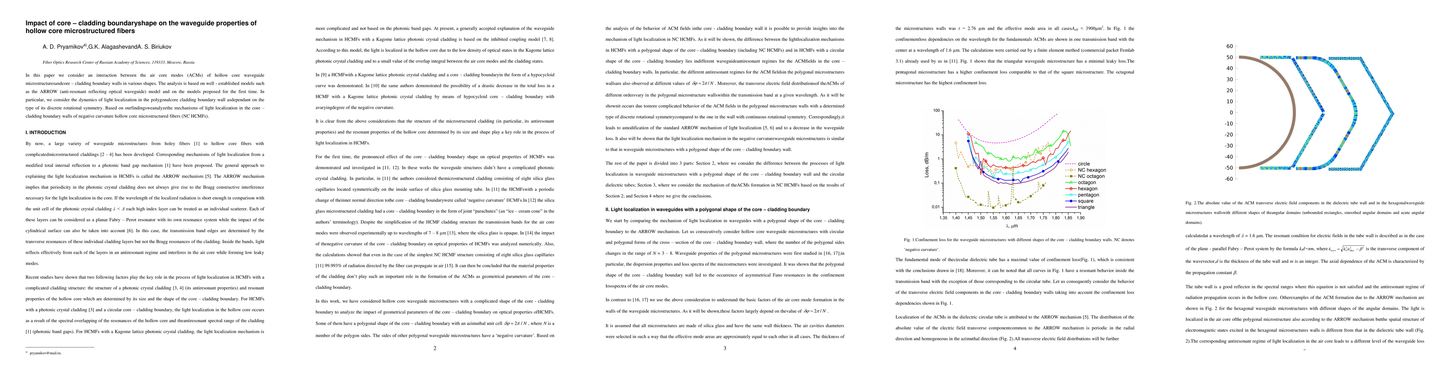 This paper investigates how different core cladding boundary shapes in hollow core microstructured fibers affect waveguide properties, employing established and novel models to analyze light localization dynamics and mechanisms in polygonal core cladding boundaries. The study reveals the influence of discrete rotational symmetry on light behavior in negative curvature fibers.