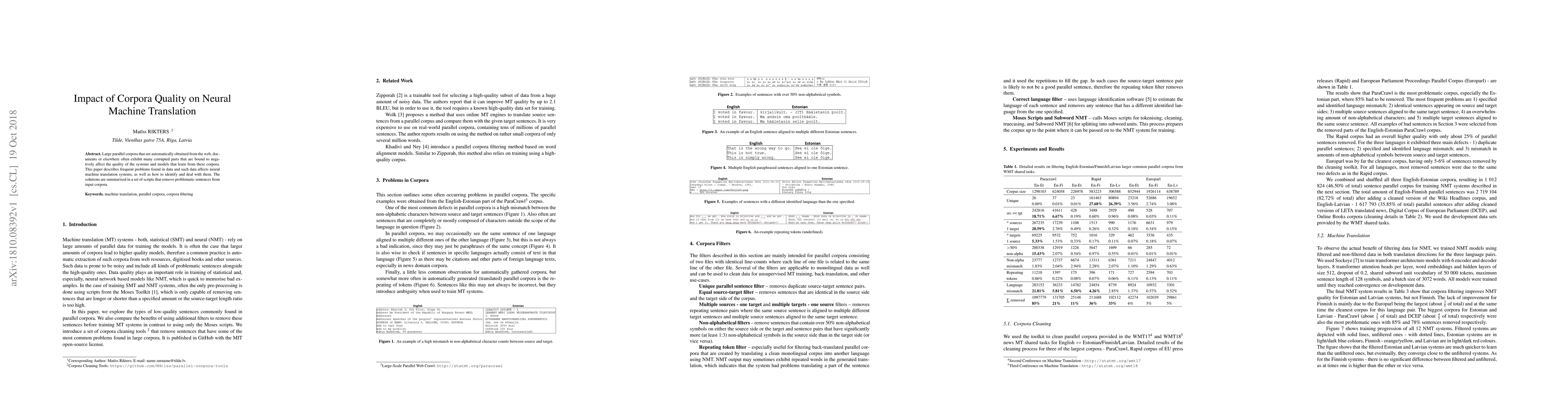 This paper investigates how corrupted data in large parallel corpora negatively impacts neural machine translation systems, and outlines methods to identify and remove problematic sentences, thereby improving translation quality. Solutions are provided in the form of scripts designed to clean input corpora.