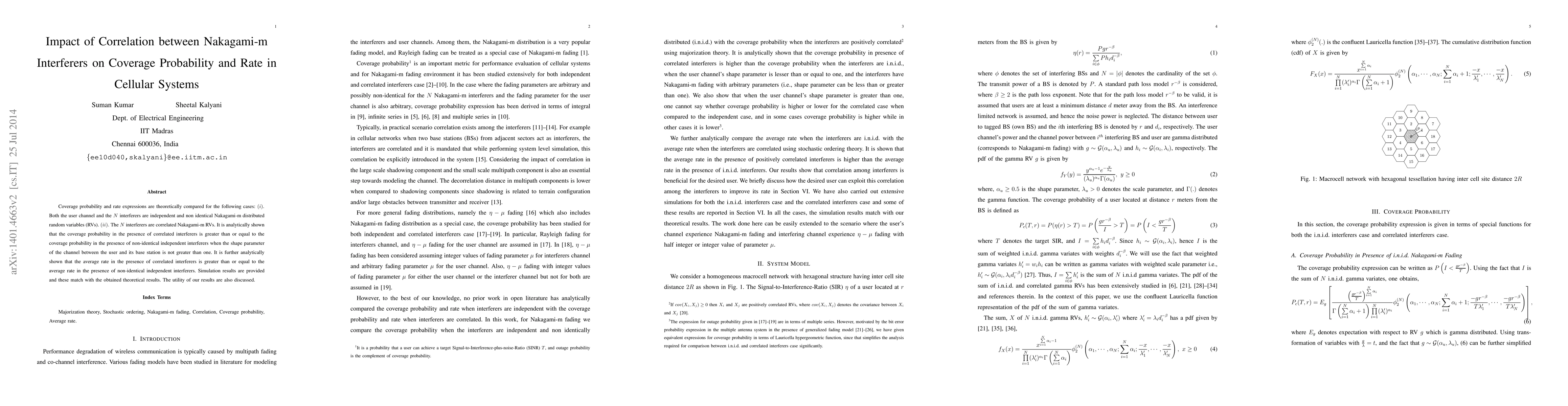 This paper compares coverage probability and rate in cellular systems under independent vs. correlated Nakagami-m distributed interferers. It finds that correlated interferers improve both coverage probability and average rate, especially when the channel's shape parameter is not greater than one. Simulation results confirm these theoretical findings.