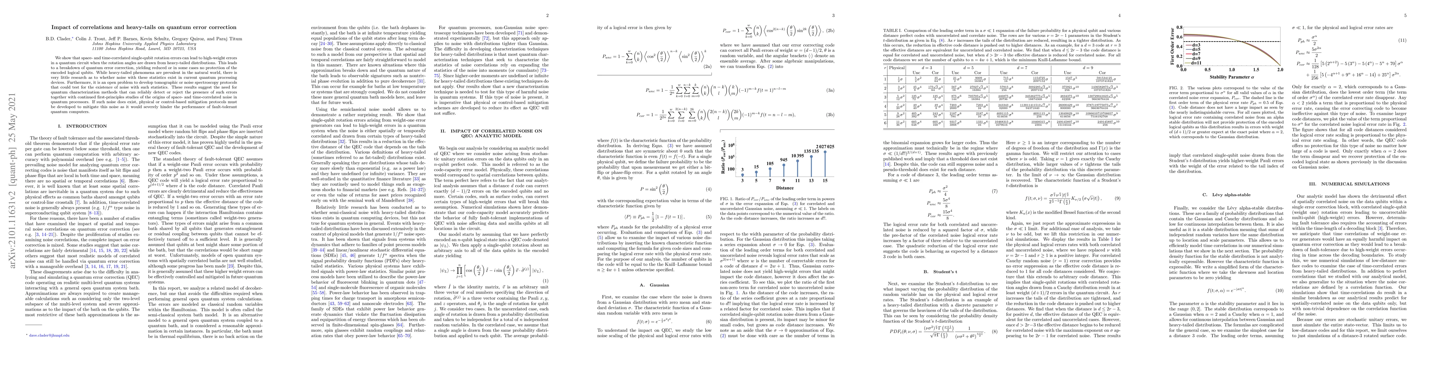 We show that space- and time-correlated single-qubit rotation errors can lead to high-weight errors in a quantum circuit when the rotation angles are drawn from heavy-tailed distributions. This leads to a breakdown of quantum error correction, yielding reduced or in some cases no protection of the encoded logical qubits. While heavy-tailed phenomena are prevalent in the natural world, there is very little research as to whether noise with these statistics exist in current quantum processing devices. Furthermore, it is an open problem to develop tomographic or noise spectroscopy protocols that could test for the existence of noise with such statistics. These results suggest the need for quantum characterization methods that can reliably detect or reject the presence of such errors together with continued first-principles studies of the origins of space- and time-correlated noise in quantum processors. If such noise does exist, physical or control-based mitigation protocols must be developed to mitigate this noise as it would severely hinder the performance of fault-tolerant quantum computers.