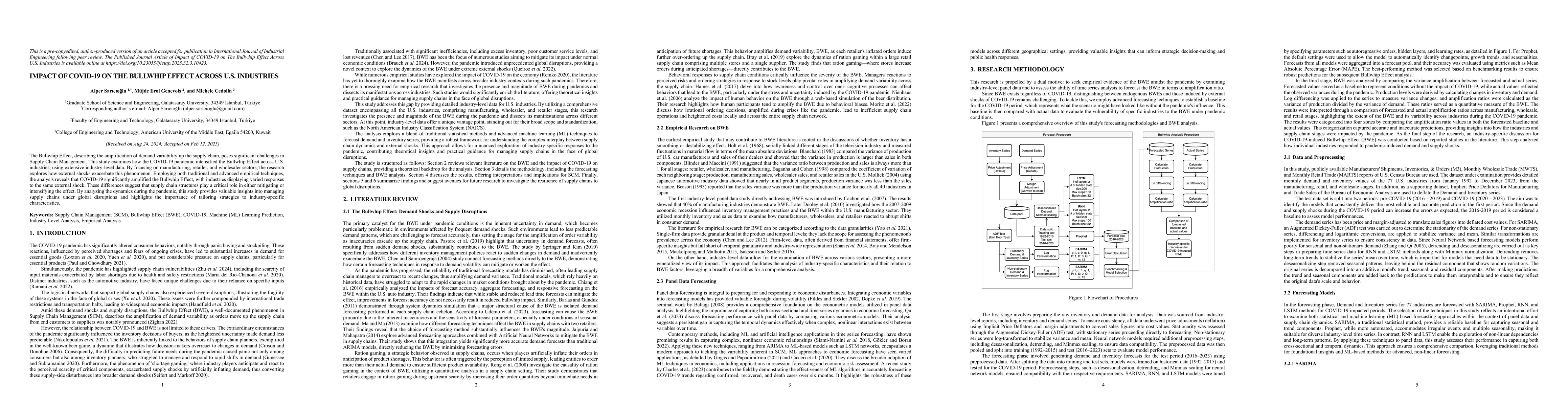 The Bullwhip Effect, describing the amplification of demand variability up the supply chain, poses significant challenges in Supply Chain Management. This study examines how the COVID-19 pandemic intensified the Bullwhip Effect across U.S. industries, using extensive industry-level data. By focusing on the manufacturing, retailer, and wholesaler sectors, the research explores how external shocks exacerbate this phenomenon. Employing both traditional and advanced empirical techniques, the analysis reveals that COVID-19 significantly amplified the Bullwhip Effect, with industries displaying varied responses to the same external shock. These differences suggest that supply chain structures play a critical role in either mitigating or intensifying the effect. By analyzing the dynamics during the pandemic, this study provides valuable insights into managing supply chains under global disruptions and highlights the importance of tailoring strategies to industry-specific characteristics.