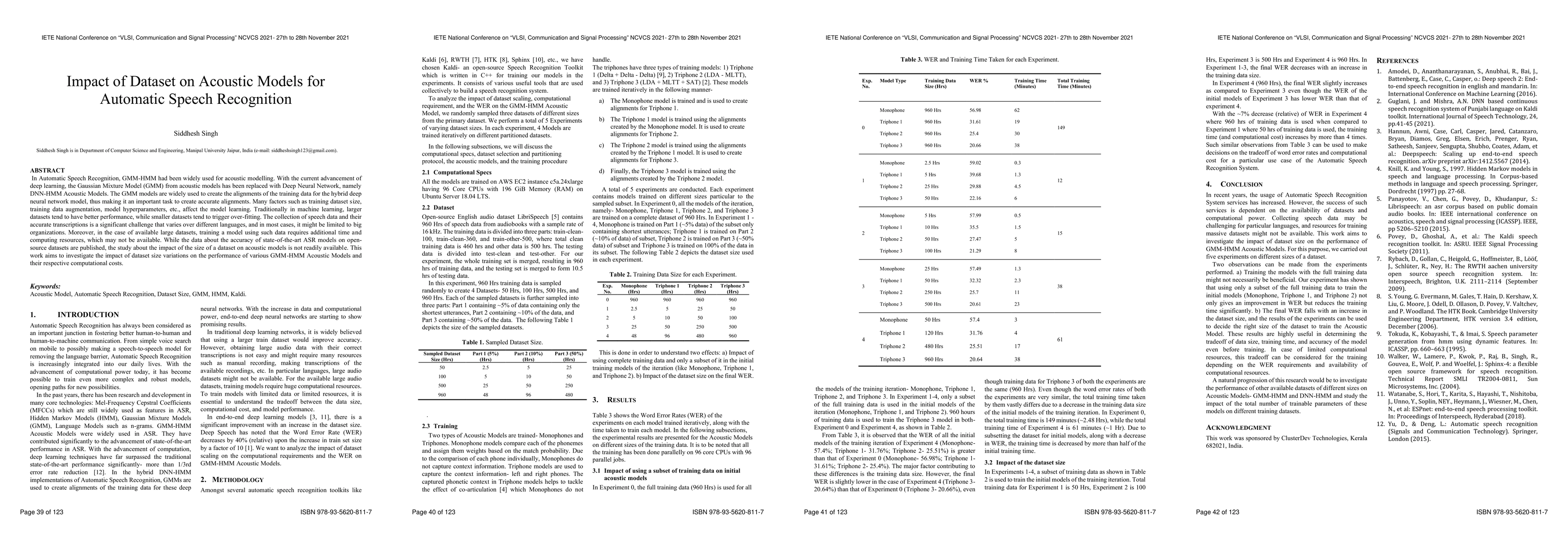 This paper investigates the impact of dataset size on the performance of GMM-HMM and DNN-HMM Acoustic Models for Automatic Speech Recognition, highlighting the challenges and computational costs associated with training on large datasets. It aims to fill the gap in understanding how dataset size variations affect model accuracy and efficiency.