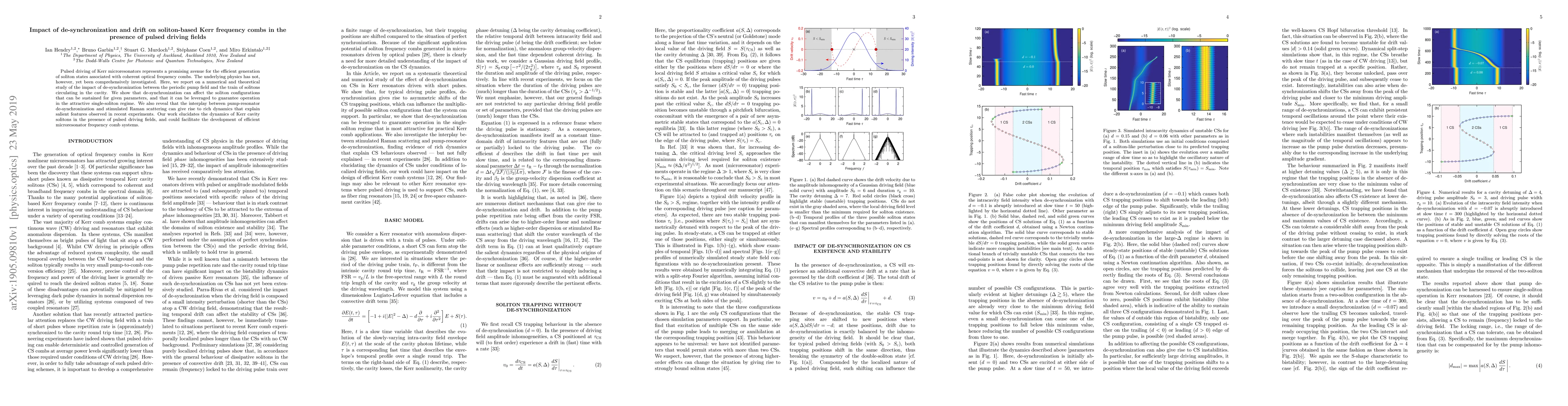 This study investigates the effects of de-synchronization and drift in soliton-based Kerr frequency combs driven by pulsed fields, revealing how de-synchronization influences soliton configurations and operation in the single-soliton regime. It also highlights the complex dynamics resulting from the interplay of de-synchronization and stimulated Raman scattering, which could enhance the design of microresonator frequency comb systems.