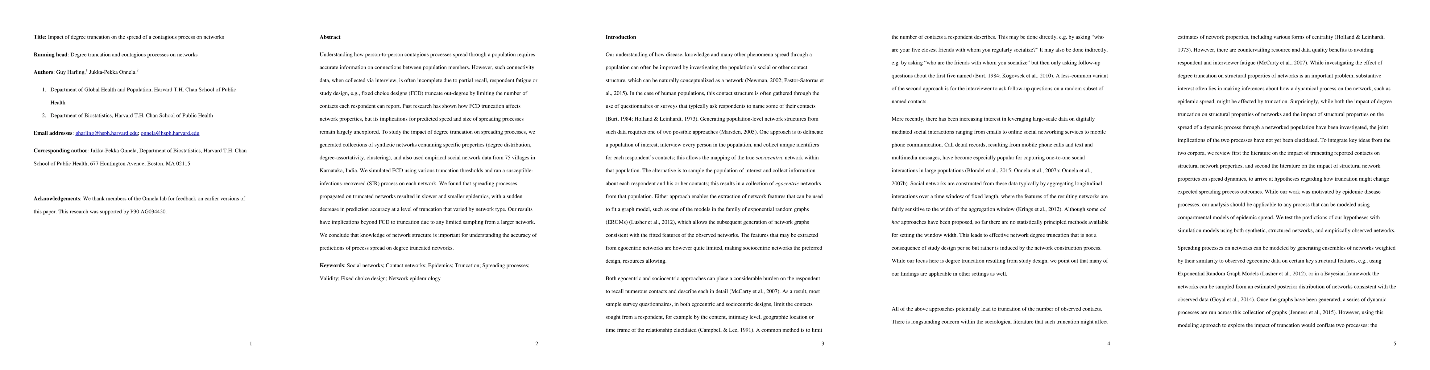 Research found that degree truncation in networks leads to slower and smaller epidemics, with reduced prediction accuracy beyond a certain level of truncation. Understanding network structure is crucial for accurate predictions on truncated networks.