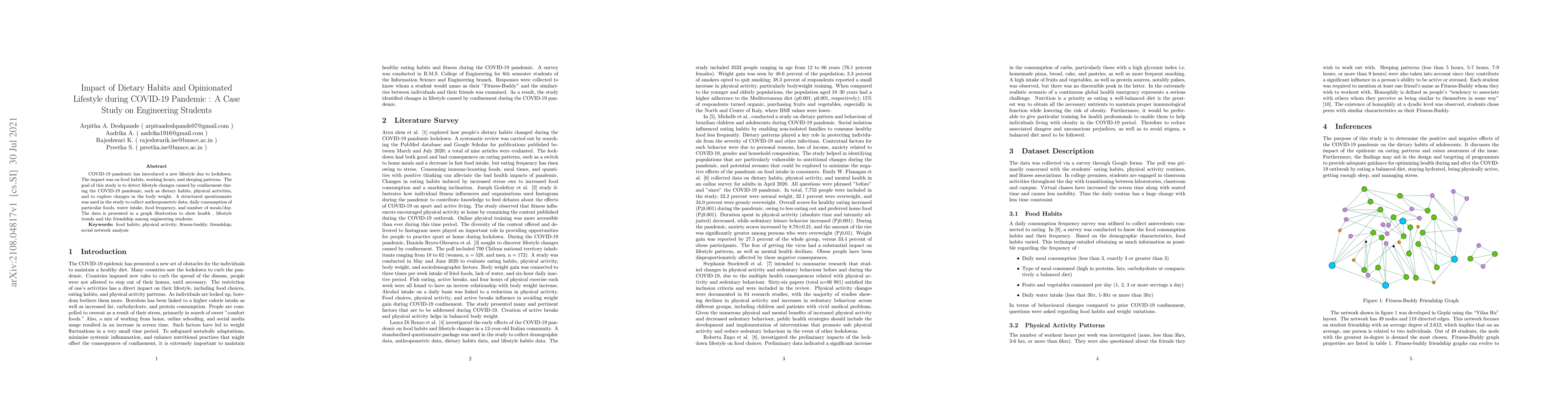 This study investigates the lifestyle changes among engineering students during the COVID-19 pandemic, focusing on dietary habits, physical activity, and body weight. Findings reveal significant shifts in food consumption, sleep patterns, and social interactions, highlighting the pandemic's impact on health and lifestyle.