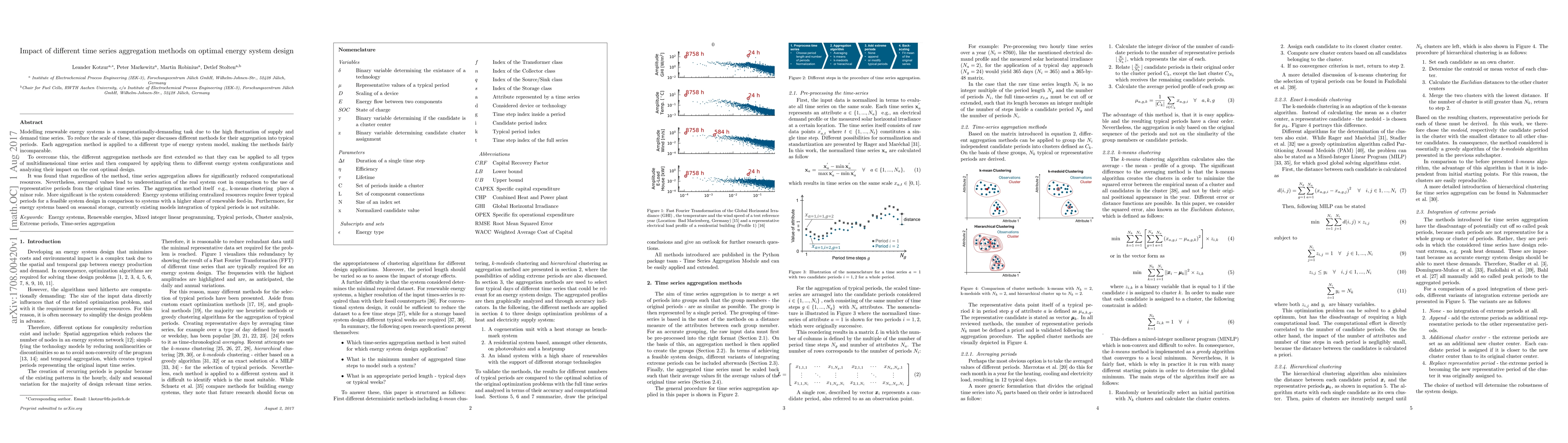 This paper investigates various time series aggregation methods to optimize energy system design, finding that while aggregation reduces computational demands, it leads to cost estimation errors. The study concludes that the choice of aggregation method has less impact than the type of energy system, with centralized systems needing fewer typical periods compared to those relying more on renewable sources.