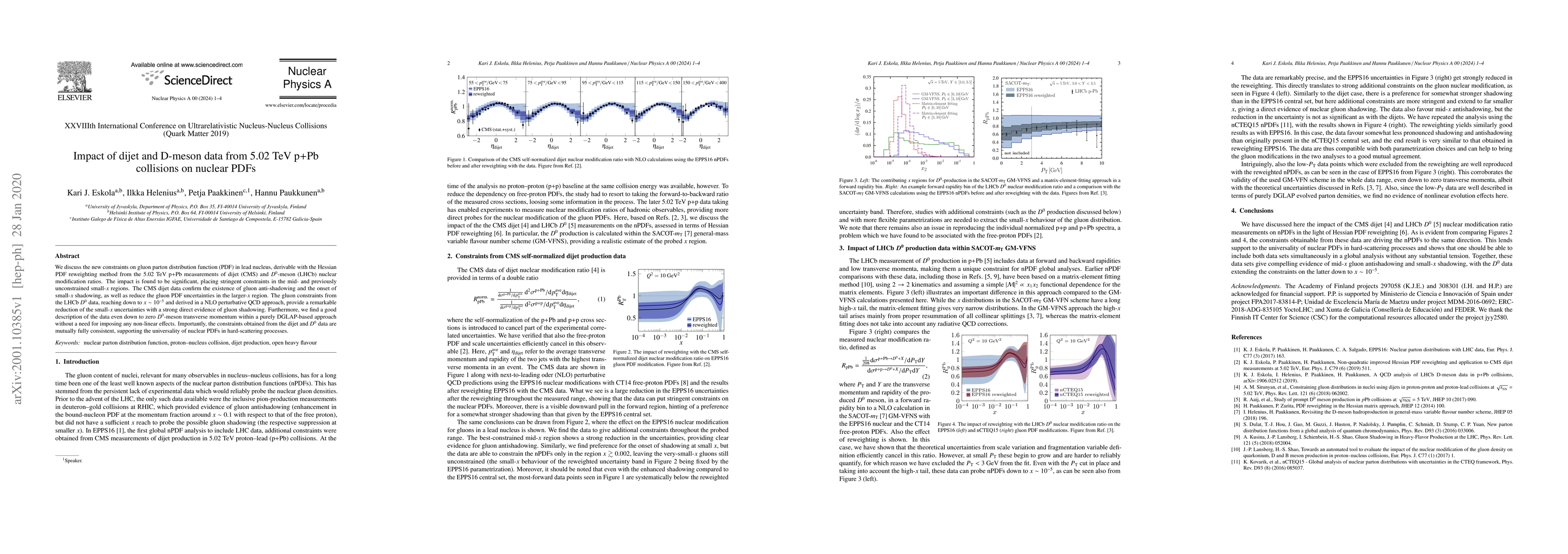 We discuss the new constraints on gluon parton distribution function (PDF) in lead nucleus, derivable with the Hessian PDF reweighting method from the 5.02 TeV p+Pb measurements of dijet (CMS) and $D^0$-meson (LHCb) nuclear modification ratios. The impact is found to be significant, placing stringent constraints in the mid- and previously unconstrained small-$x$ regions. The CMS dijet data confirm the existence of gluon anti-shadowing and the onset of small-$x$ shadowing, as well as reduce the gluon PDF uncertainties in the larger-$x$ region. The gluon constraints from the LHCb $D^0$ data, reaching down to $x \sim 10^{-5}$ and derived in a NLO perturbative QCD approach, provide a remarkable reduction of the small-$x$ uncertainties with a strong direct evidence of gluon shadowing. Furthermore, we find a good description of the data even down to zero $D^0$-meson transverse momentum within a purely DGLAP-based approach without a need for imposing any non-linear effects. Importantly, the constraints obtained from the dijet and $D^0$ data are mutually fully consistent, supporting the universality of nuclear PDFs in hard-scattering processes.