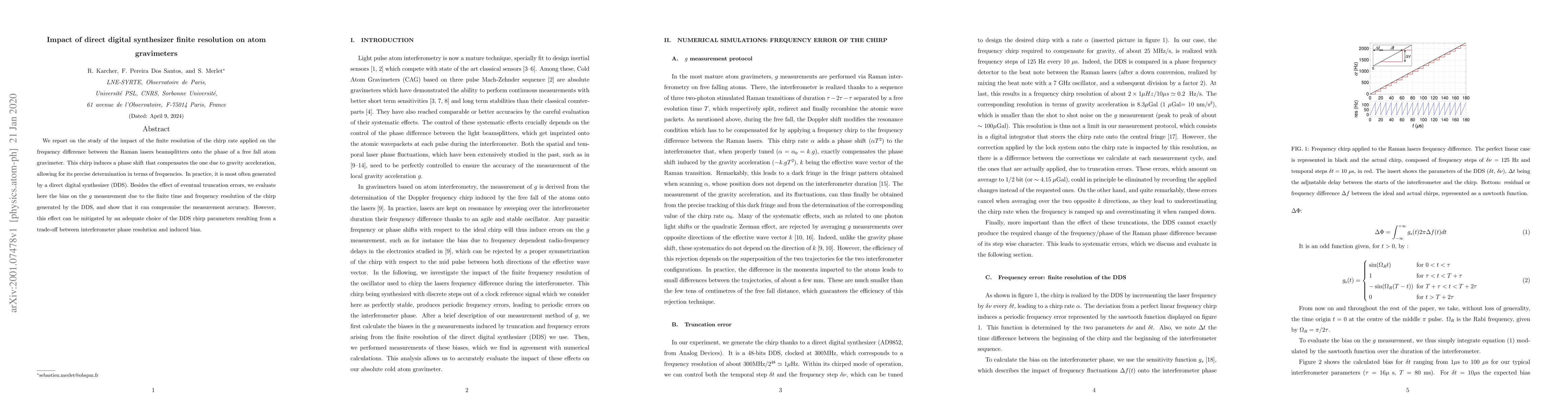 We report on the study of the impact of the finite resolution of the chirp rate applied on the frequency difference between the Raman lasers beamsplitters onto the phase of a free fall atom gravimeter. This chirp induces a phase shift that compensates the one due to gravity acceleration, allowing for its precise determination in terms of frequencies. In practice, it is most often generated by a direct digital synthesizer (DDS). Besides the effect of eventual truncation errors, we evaluate here the bias on the g measurement due to the finite time and frequency resolution of the chirp generated by the DDS, and show that it can compromise the measurement accuracy. However, this effect can be mitigated by an adequate choice of the DDS chirp parameters resulting from a trade-off between interferometer phase resolution and induced bias.