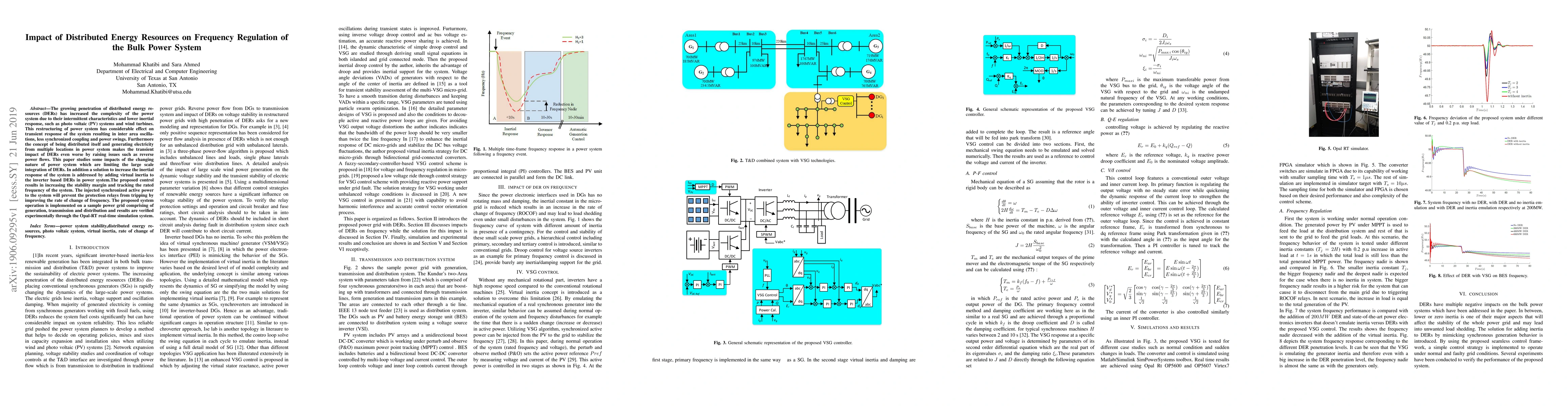 This paper investigates how the increasing integration of distributed energy resources (DERs) affects the frequency regulation of the bulk power system, highlighting issues like inter-area oscillations and reverse power flows. It proposes a solution involving virtual inertia added to inverter-based DERs to enhance system stability and frequency regulation, validated through real-time simulations.