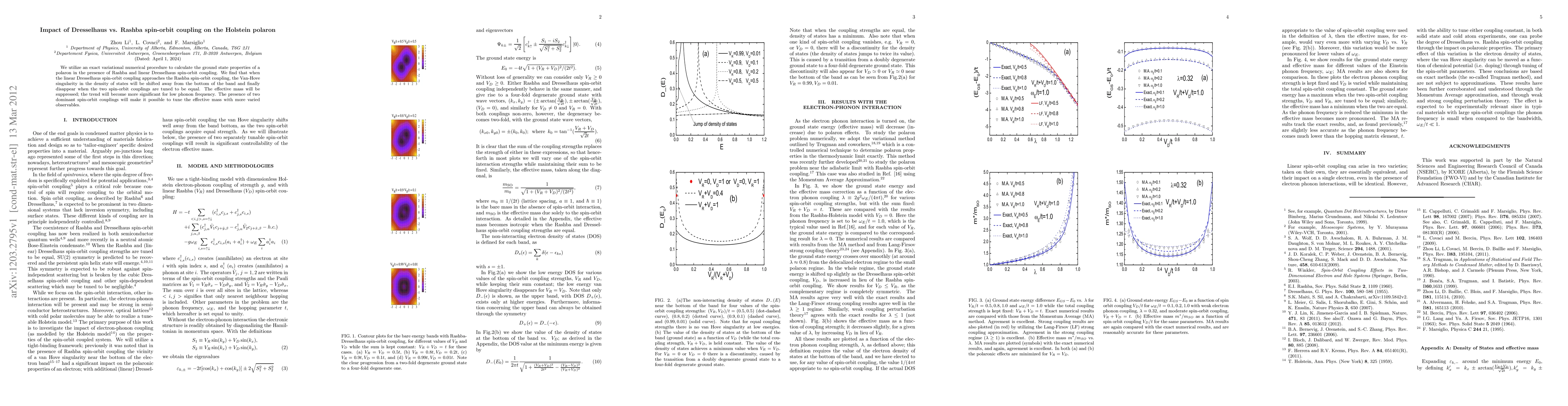 Summary: This study explores the effects of Dresselhaus vs. Rashba spin-orbit coupling on a Holstein polaron using an exact variational method. It reveals that equalizing the two spin-orbit couplings eliminates the Van-Hove singularity and suppresses effective mass, with the effect becoming more pronounced at low phonon frequencies.