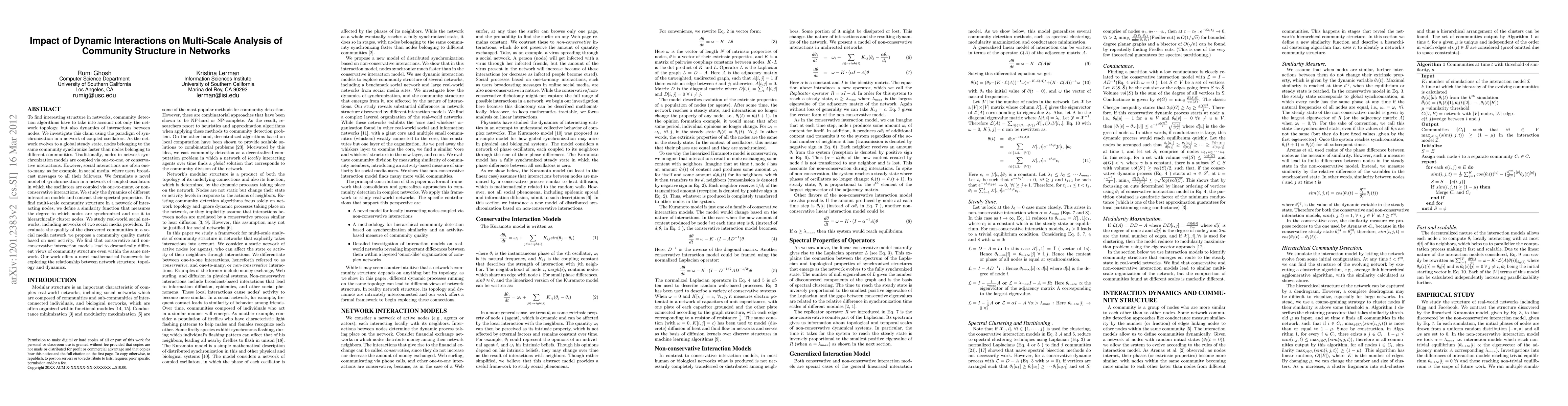 To find interesting structure in networks, community detection algorithms have to take into account not only the network topology, but also dynamics of interactions between nodes. We investigate this claim using the paradigm of synchronization in a network of coupled oscillators. As the network evolves to a global steady state, nodes belonging to the same community synchronize faster than nodes belonging to different communities. Traditionally, nodes in network synchronization models are coupled via one-to-one, or conservative interactions. However, social interactions are often one-to-many, as for example, in social media, where users broadcast messages to all their followers. We formulate a novel model of synchronization in a network of coupled oscillators in which the oscillators are coupled via one-to-many, or non-conservative interactions. We study the dynamics of different interaction models and contrast their spectral properties. To find multi-scale community structure in a network of interacting nodes, we define a similarity function that measures the degree to which nodes are synchronized and use it to hierarchically cluster nodes. We study real-world social networks, including networks of two social media providers. To evaluate the quality of the discovered communities in a social media network we propose a community quality metric based on user activity. We find that conservative and non-conservative interaction models lead to dramatically different views of community structure even within the same network. Our work offers a novel mathematical framework for exploring the relationship between network structure, topology and dynamics.