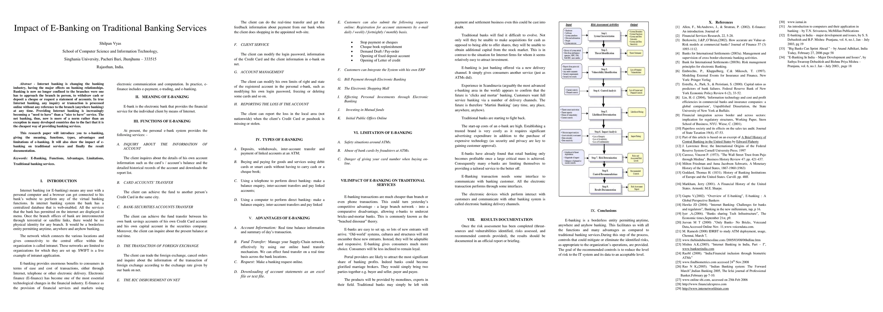 This paper explores the transformative effects of e-banking on traditional banking services, emphasizing its growing necessity and cost-effectiveness. It examines the shift from branch-dependent banking to online transactions, detailing the advantages and limitations of e-banking, and its impact on conventional banking practices.