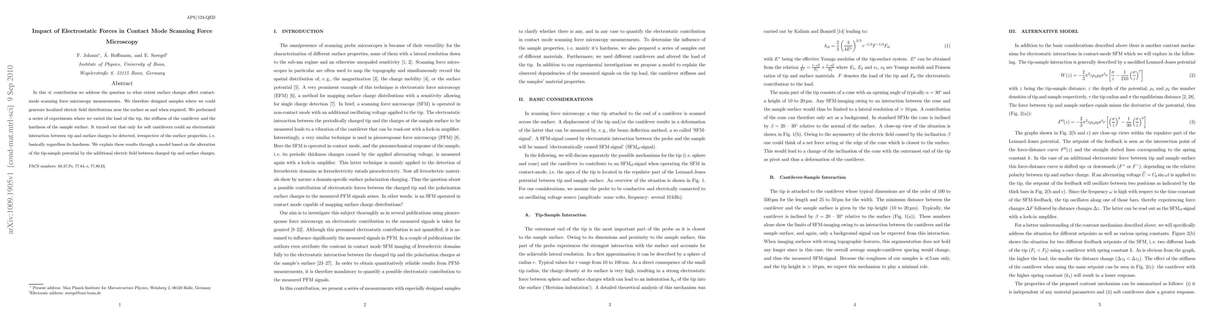 Researchers investigated how electrostatic forces affect contact-mode scanning force microscopy measurements, finding that only soft cantilevers can detect these interactions, regardless of the sample surface's hardness.