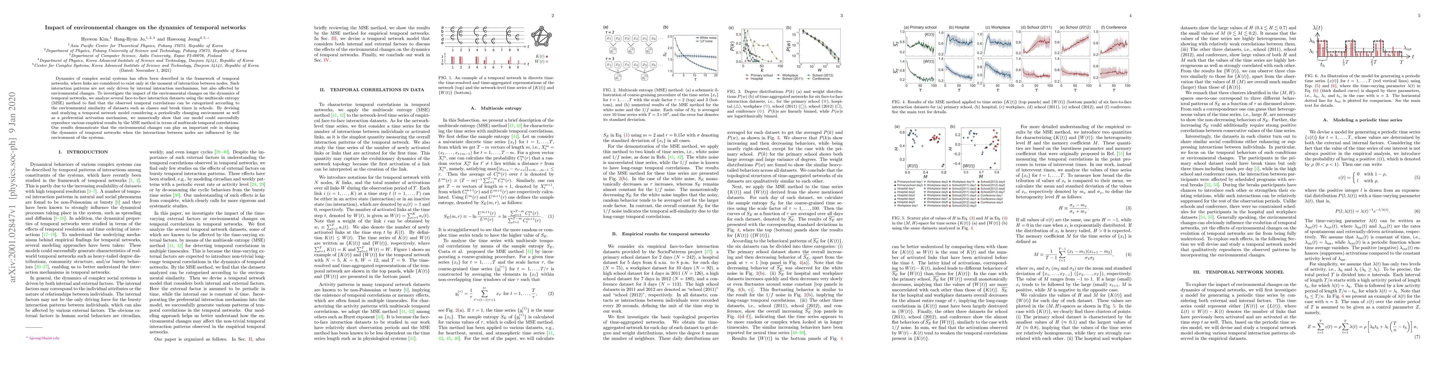 This paper investigates how environmental changes affect the dynamics of temporal networks, using face-to-face interaction data and multiscale entropy analysis. It finds that environmental similarity categorizes temporal correlations and demonstrates a model that successfully reproduces these empirical results, showing that environmental changes significantly shape temporal network dynamics.