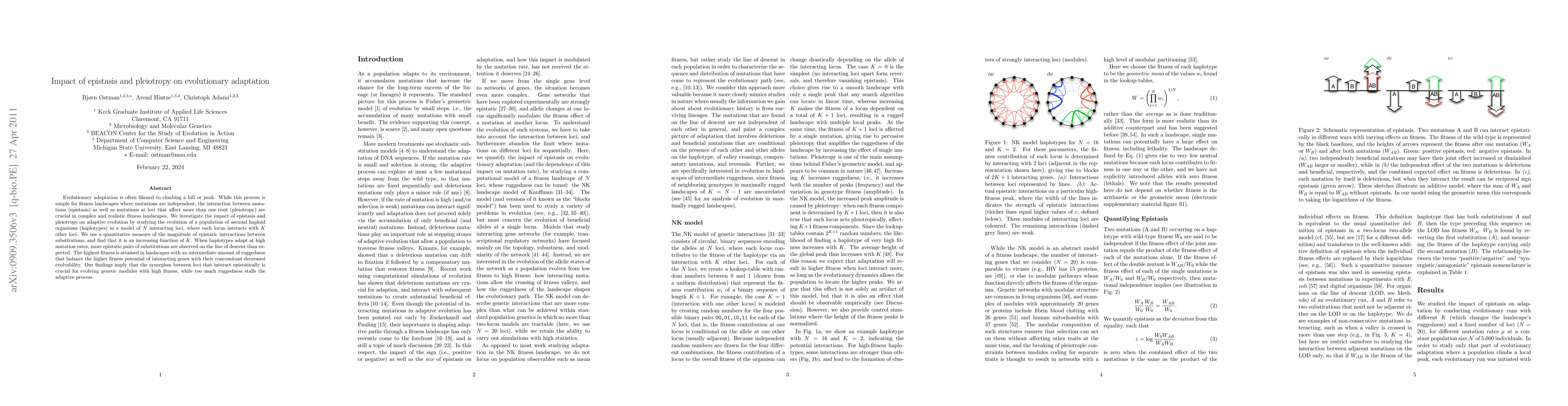 This research highlights the importance of epistasis and pleiotropy in evolutionary adaptation, suggesting that synergism between interacting loci is crucial for evolving genetic modules with high fitness.