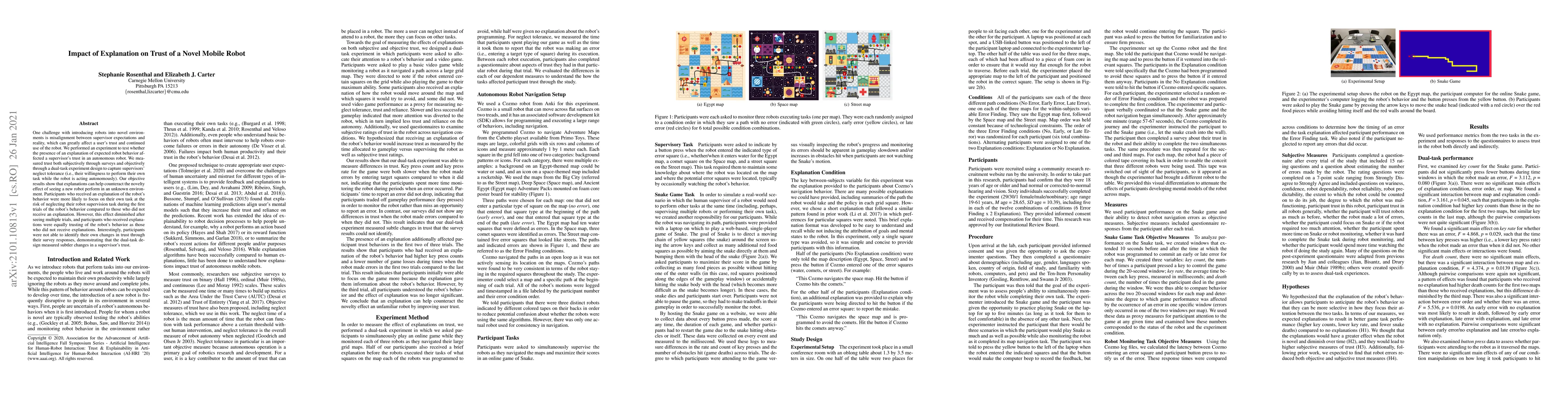 This study investigates how explanations of a robot's behavior influence user trust in a novel mobile robot, finding that initial explanations increase neglect tolerance but diminish over time. The dual-task experiment revealed subtler trust changes than self-reported surveys.
