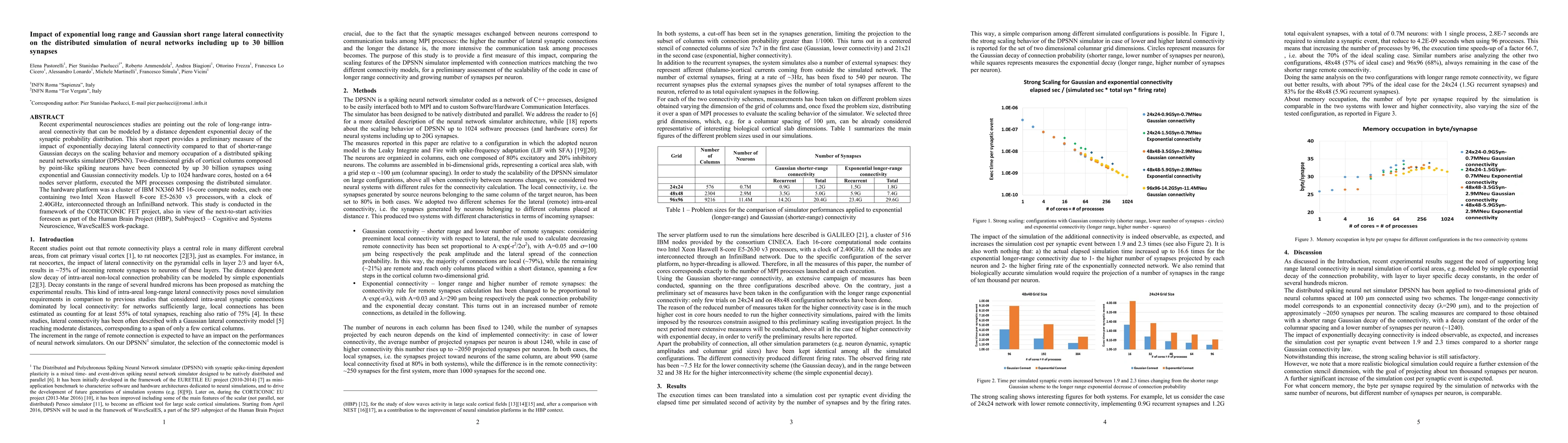Researchers investigated how different types of neural network connectivity affect large-scale simulations, finding that exponentially decaying connections cause more memory issues than Gaussian connections, but both improve simulation performance.