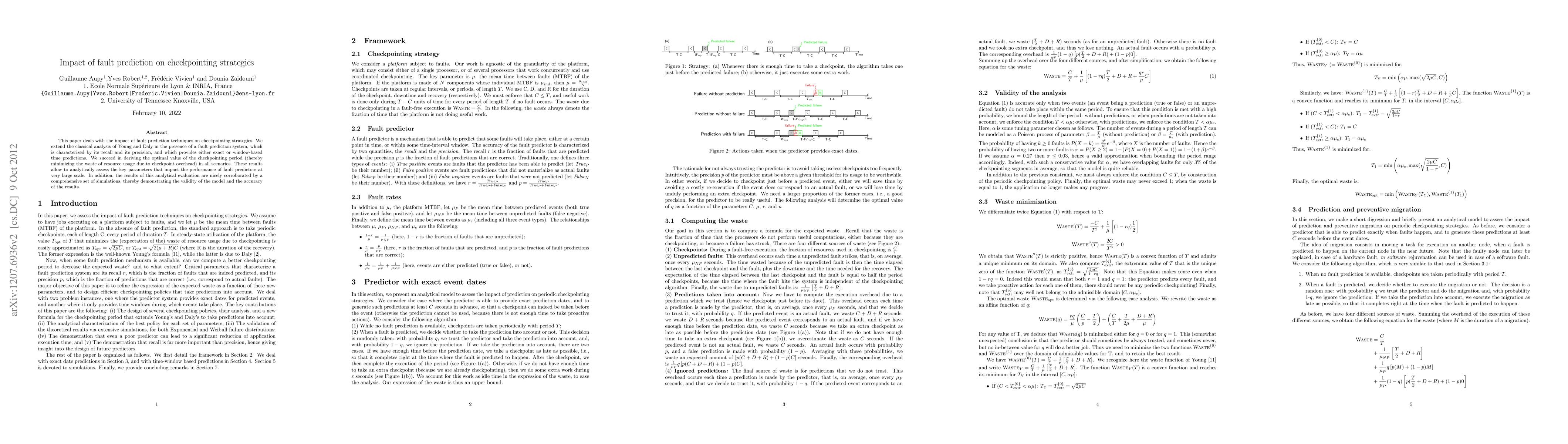 This paper analyzes how fault prediction techniques influence checkpointing strategies, deriving optimal checkpointing periods to minimize resource waste. Analytical results are validated through simulations, confirming the model's accuracy and the impact of fault prediction parameters on performance.