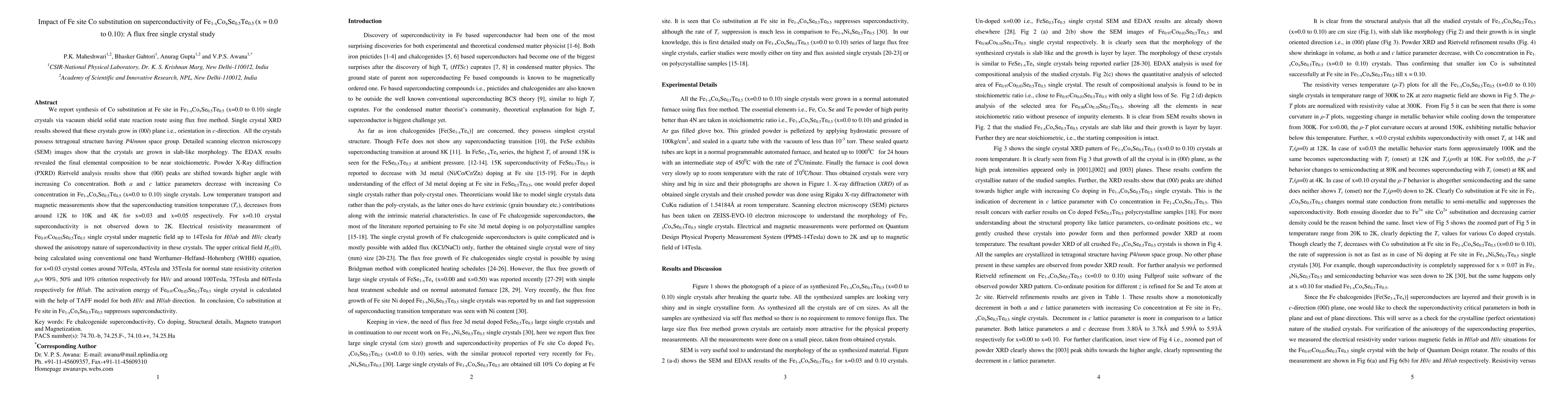 This study investigates the effect of Co substitution at Fe sites in Fe1-xCoxSe0.5Te0.5 single crystals, synthesized via a flux-free solid-state reaction. The crystals show a tetragonal structure and a decrease in both a and c lattice parameters with increasing Co concentration, leading to a reduction in superconducting transition temperature (Tc) from 12K to 4K for Co concentrations up to 0.05, with no superconductivity observed for x=0.10.