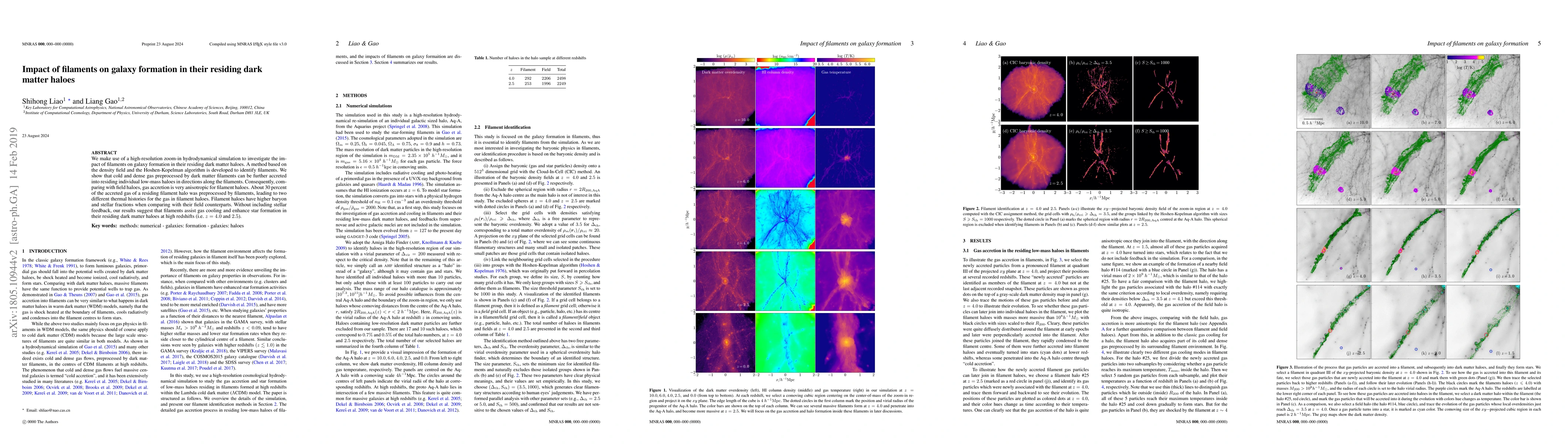 The research utilizes a high-resolution zoom-in hydrodynamical simulation to identify filaments via a method based on the density field and the Hoshen-Kopelman algorithm, focusing on galaxy formation in low-mass dark matter haloes at high redshifts (z=4.0 and 2.5).