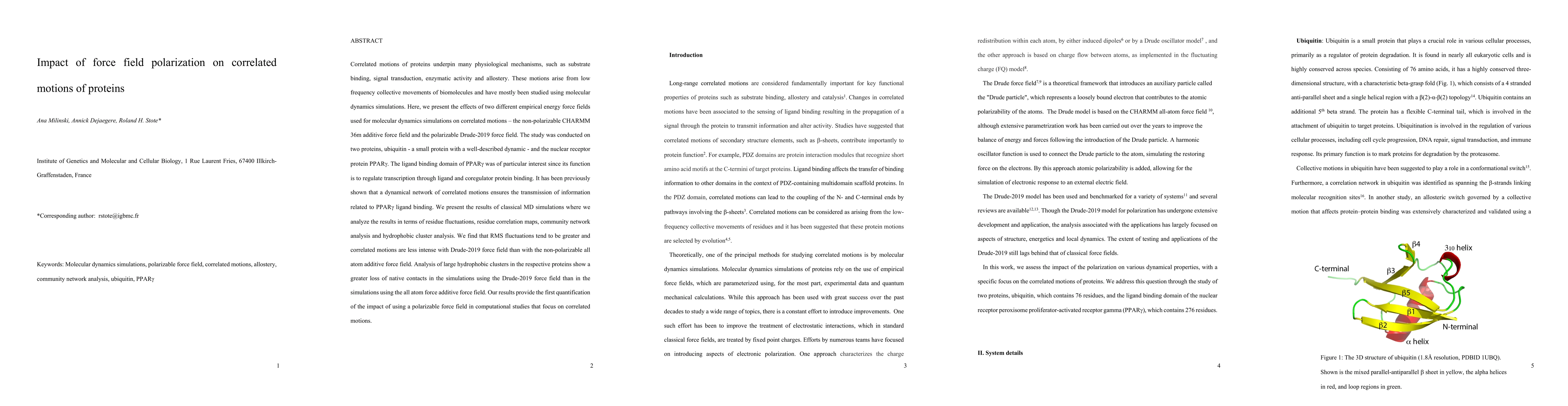 This research highlights how polarization effects in force fields influence protein dynamics and interactions, which is critical for understanding molecular mechanisms in biological systems and improving computational models.
