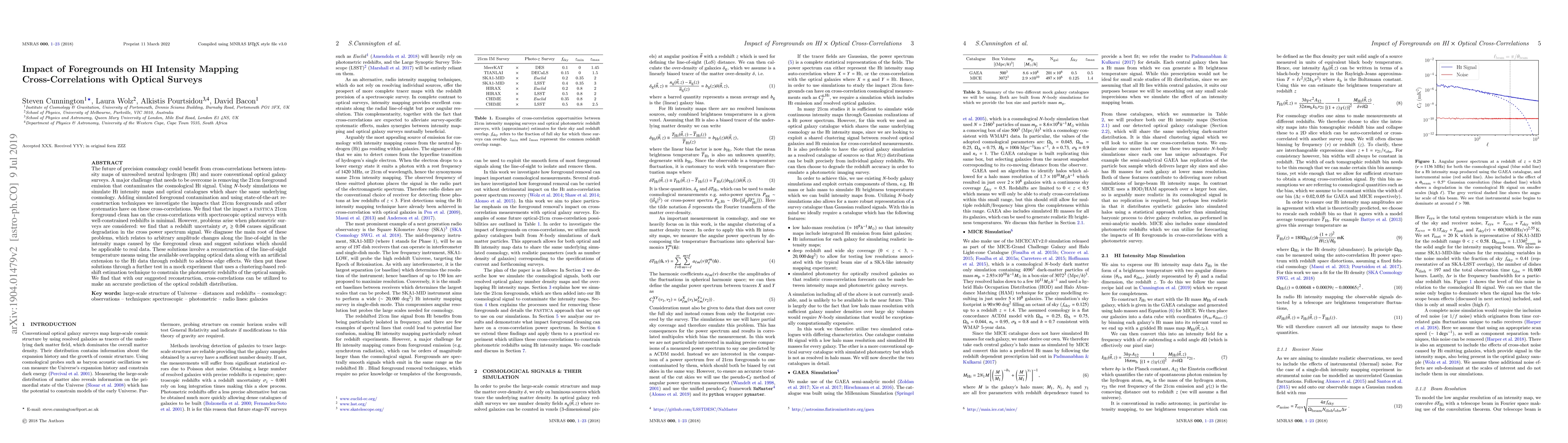 This paper investigates the impact of 21cm foreground contamination on cross-correlations between HI intensity maps and optical galaxy surveys. It finds minimal contamination effects from foreground cleaning with spectroscopic surveys but significant degradation with photometric surveys due to redshift uncertainties. The paper proposes solutions involving reconstruction techniques to mitigate these issues.
