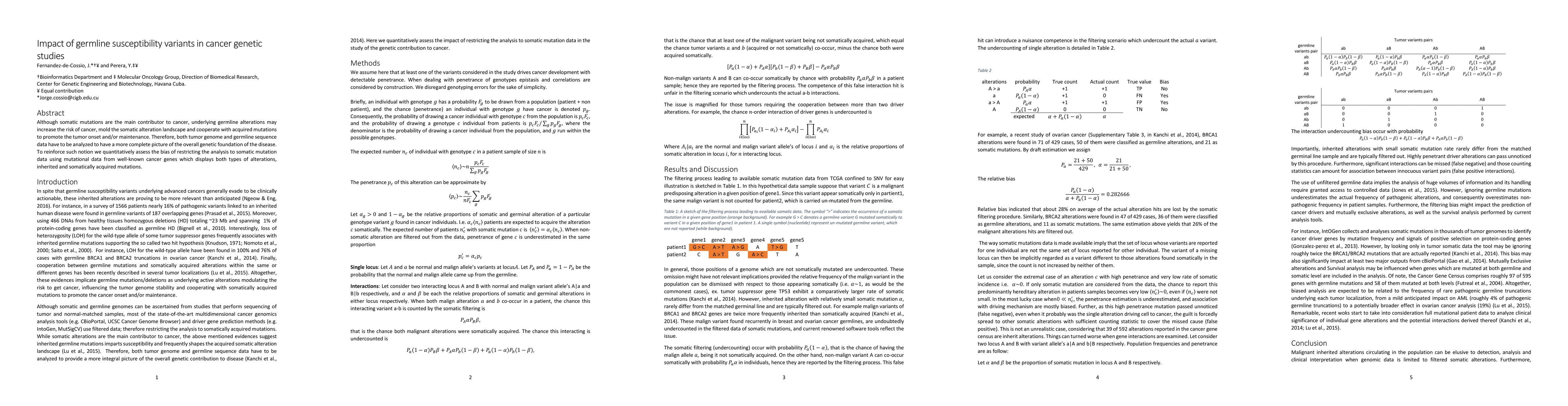 Although somatic mutations are the main contributor to cancer, underlying germline alterations may increase the risk of cancer, mold the somatic alteration landscape and cooperate with acquired mutations to promote the tumor onset and/or maintenance. Therefore, both tumor genome and germline sequence data have to be analyzed to have a more complete picture of the overall genetic foundation of the disease. To reinforce such notion we quantitatively assess the bias of restricting the analysis to somatic mutation data using mutational data from well-known cancer genes which displays both types of alterations, inherited and somatically acquired mutations.