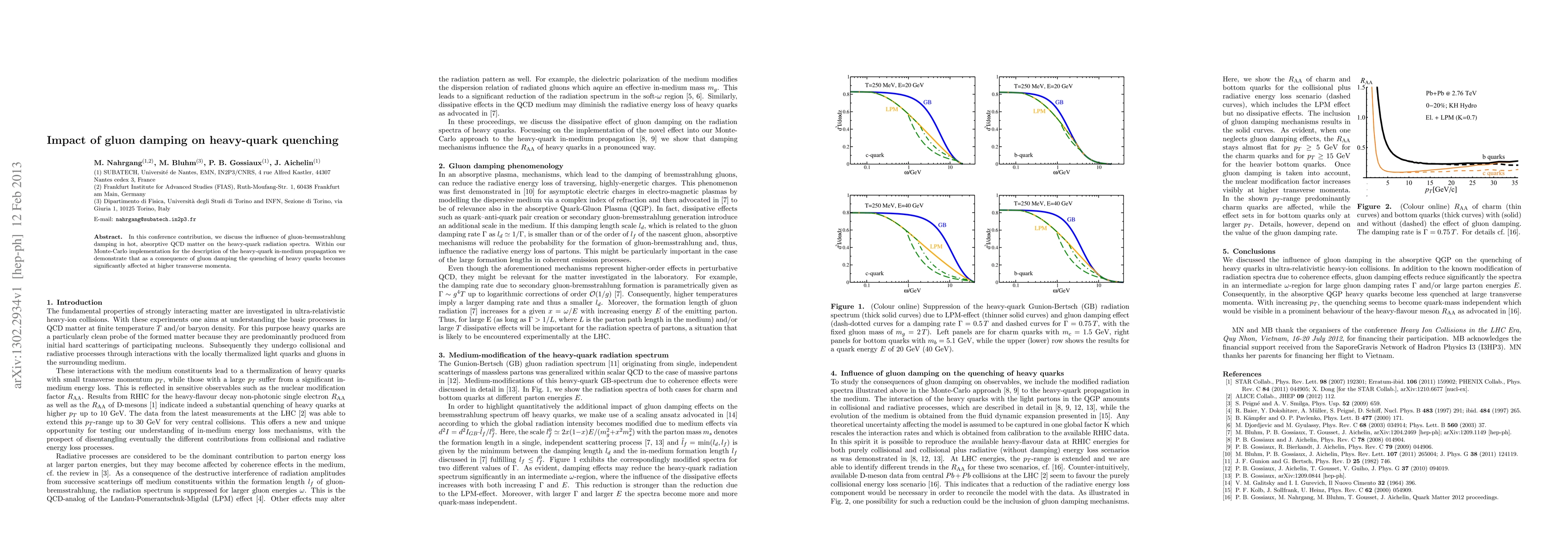 In this conference contribution, we discuss the influence of gluon-bremsstrahlung damping in hot, absorptive QCD matter on the heavy-quark radiation spectra. Within our Monte-Carlo implementation for the description of the heavy-quark in-medium propagation we demonstrate that as a consequence of gluon damping the quenching of heavy quarks becomes significantly affected at higher transverse momenta.