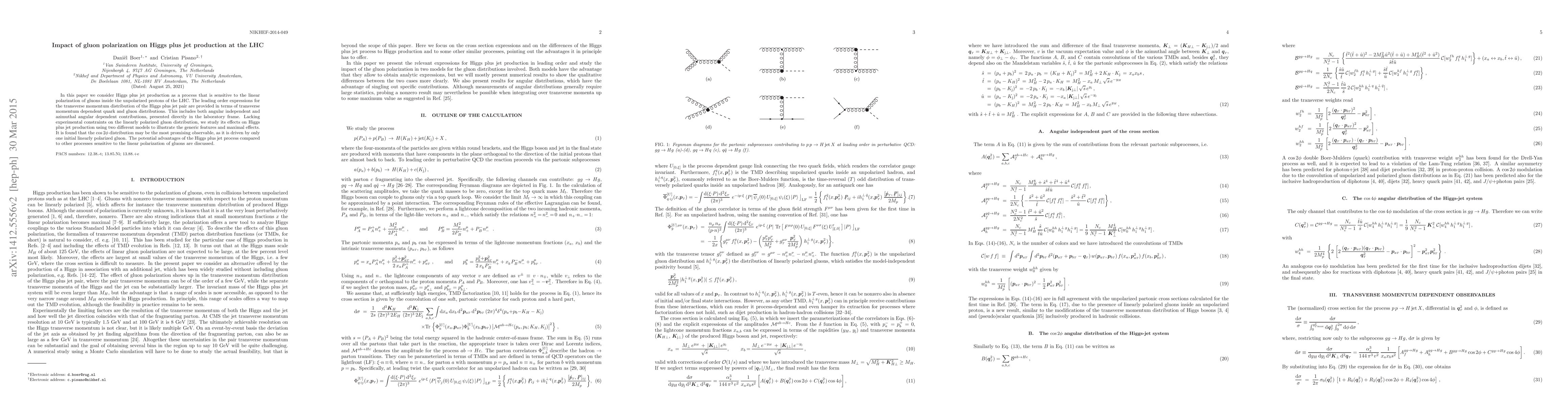 This paper investigates Higgs plus jet production at the LHC, focusing on its sensitivity to the linear polarization of gluons within unpolarized protons. It provides leading order expressions for the transverse momentum distribution and explores the effects of linearly polarized gluons using two different models, highlighting the $\cos 2 \phi$ distribution as a promising observable.
