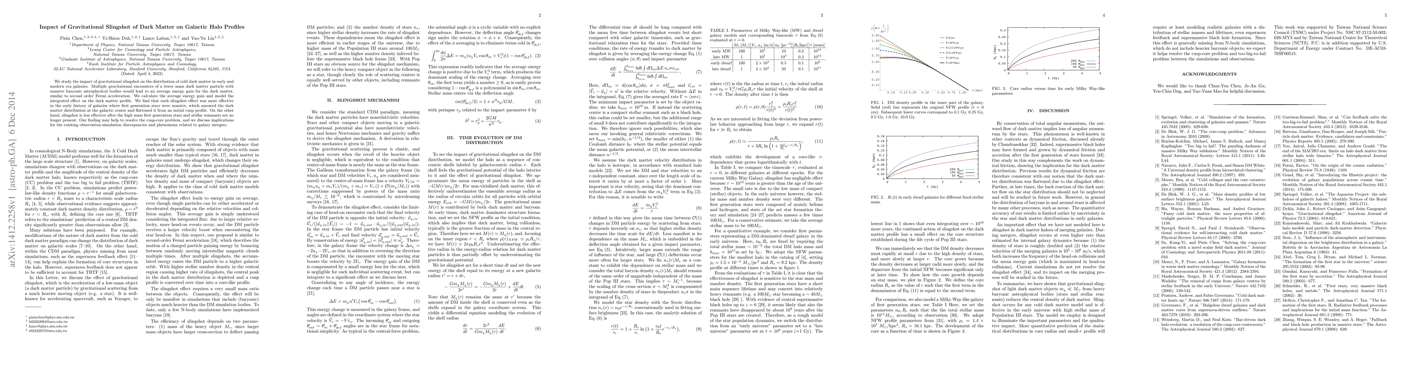 We study the impact of gravitational slingshot on the distribution of cold dark matter in early and modern era galaxies. Multiple gravitational encounters of a lower mass dark matter particle with massive baryonic astrophysical bodies would lead to an average energy gain for the dark matter, similar to second order Fermi acceleration. We calculate the average energy gain and model the integrated effect on the dark matter profile. We find that such slingshot effect was most effective in the early history of galaxies where first generation stars were massive, which smeared the dark matter distribution at the galactic center and flattened it from an initial cusp profile. On the other hand, slingshot is less effective after the high mass first generation stars and stellar remnants are no longer present. Our finding may help to resolve the cusp-core problem, and we discuss implications for the existing observation-simulation discrepancies and phenomena related to galaxy mergers.