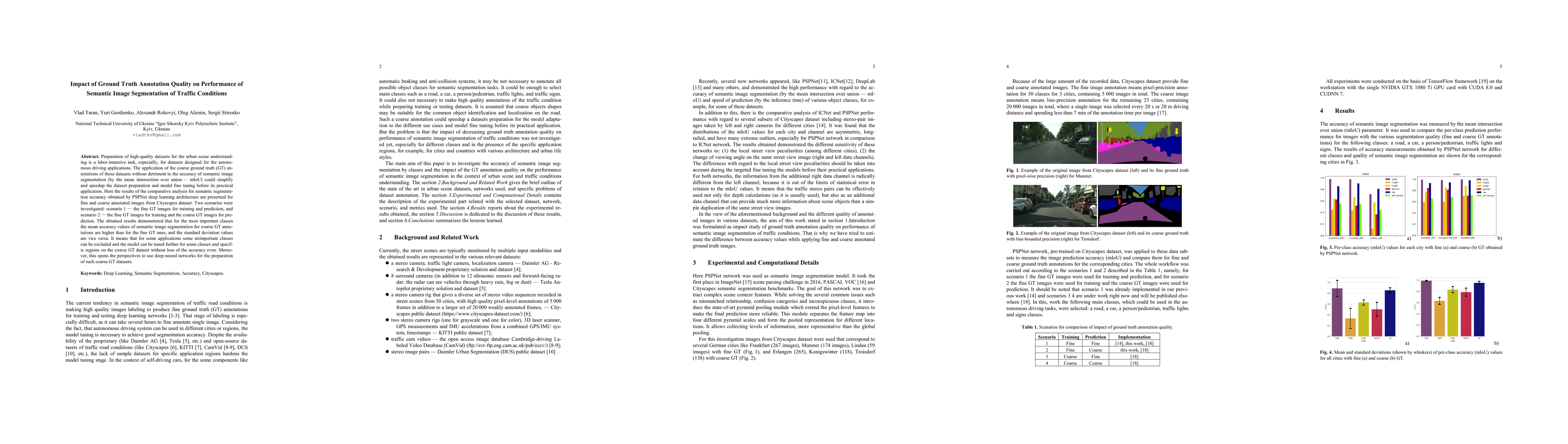 Preparation of high-quality datasets for the urban scene understanding is a labor-intensive task, especially, for datasets designed for the autonomous driving applications. The application of the coarse ground truth (GT) annotations of these datasets without detriment to the accuracy of semantic image segmentation (by the mean intersection over union - mIoU) could simplify and speedup the dataset preparation and model fine tuning before its practical application. Here the results of the comparative analysis for semantic segmentation accuracy obtained by PSPNet deep learning architecture are presented for fine and coarse annotated images from Cityscapes dataset. Two scenarios were investigated: scenario 1 - the fine GT images for training and prediction, and scenario 2 - the fine GT images for training and the coarse GT images for prediction. The obtained results demonstrated that for the most important classes the mean accuracy values of semantic image segmentation for coarse GT annotations are higher than for the fine GT ones, and the standard deviation values are vice versa. It means that for some applications some unimportant classes can be excluded and the model can be tuned further for some classes and specific regions on the coarse GT dataset without loss of the accuracy even. Moreover, this opens the perspectives to use deep neural networks for the preparation of such coarse GT datasets.