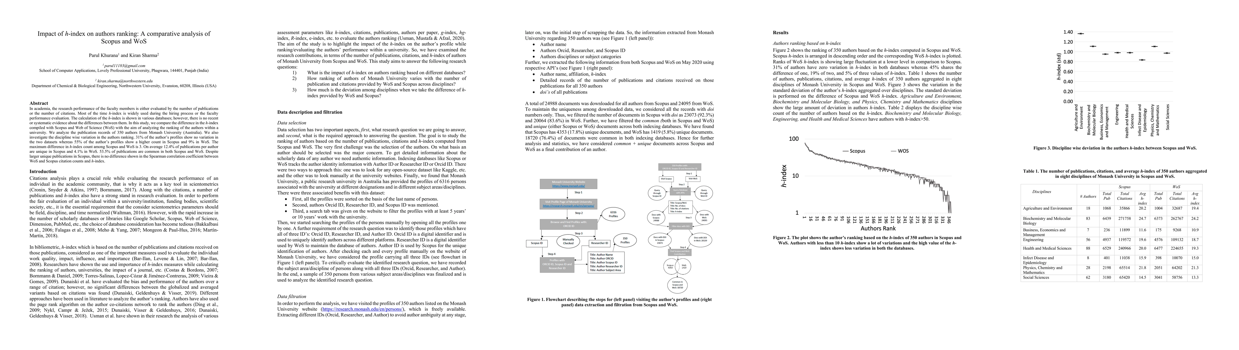 A study comparing h-index calculations in Scopus and WoS databases found that 31% of authors have the same ranking, while 55% have higher rankings in Scopus and 9% in WoS, with a maximum difference of 3 points.