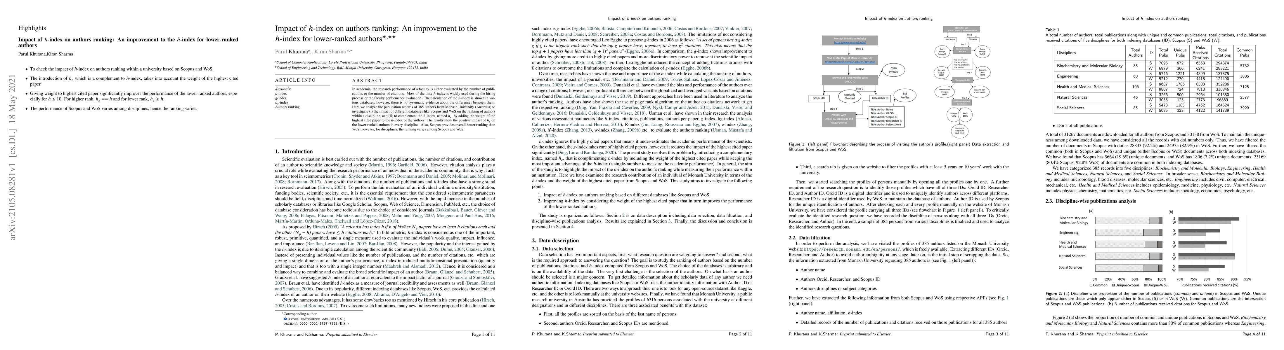 In academia, the research performance of a faculty is either evaluated by the number of publications or the number of citations. Most of the time h-index is widely used during the hiring process or the faculty performance evaluation. The calculation of the h-index is shown in various databases; however, there is no systematic evidence about the differences between them. Here we analyze the publication records of 385 authors from Monash University (Australia) to investigate (i) the impact of different databases like Scopus and WoS on the ranking of authors within a discipline, and (ii) to complement the $h$-index, named $h_c$, by adding the weight of the highest cited paper to the $h$-index of the authors. The results show the positive impact of $h_c$ on the lower-ranked authors in every discipline. Also, Scopus provides an overall better ranking than WoS; however, the ranking varies among Scopus and WoS for disciplines.