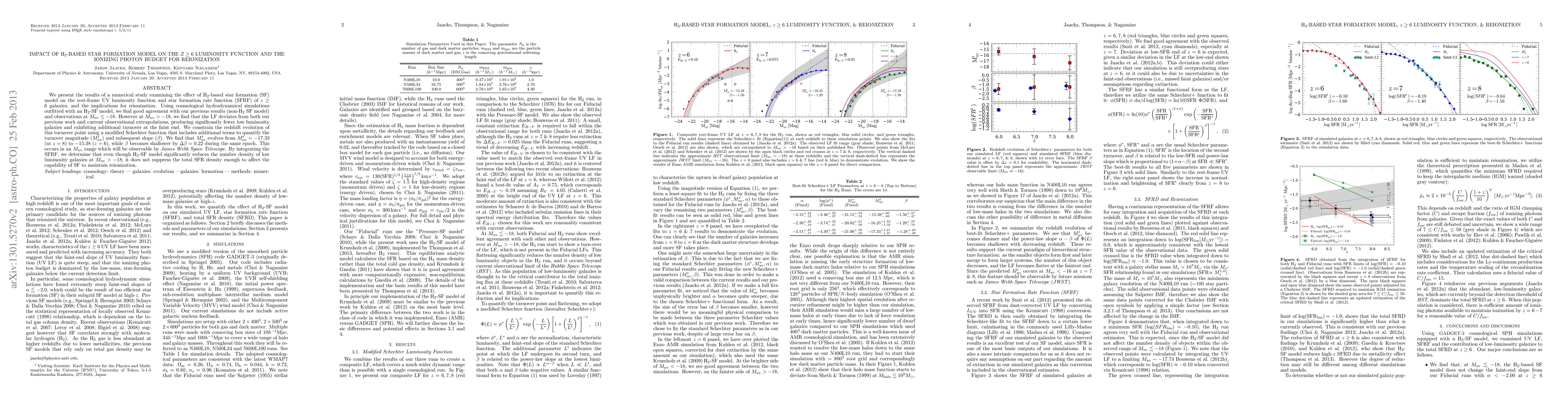 We present the results of a numerical study examining the effect of H_2-based star formation (SF) model on the rest-frame UV luminosity function and star formation rate function (SFRF) of z>=6 galaxies, and the implications for reionization. Using cosmological hydrodynamical simulations outfitted with an H_2-SF model, we find good agreement with our previous results (non-H_2 SF model) and observations at Muv<=-18. However at Muv>-18, we find that the LF deviates from both our previous work and current observational extrapolations, producing significantly fewer low-luminosity galaxies and exhibiting additional turnover at the faint end. We constrain the redshift evolution of this turnover point using a modified Schechter function that includes additional terms to quantify the turnover magnitude (Muv^t) and subsequent slope (Beta). We find that Muv^t evolves from Muv^t=-17.33 (at z=8) to -15.38 (z=6), while Beta becomes shallower by \Delta Beta=0.22 during the same epoch. This occurs in an Muv range which will be observable by JWST. By integrating the SFRF, we determine that even though H_2-SF model significantly reduces the number density of low luminosity galaxies at Muv>-18, it does not suppress the total SFR density enough to affect the capability of SF to maintain reionization.
