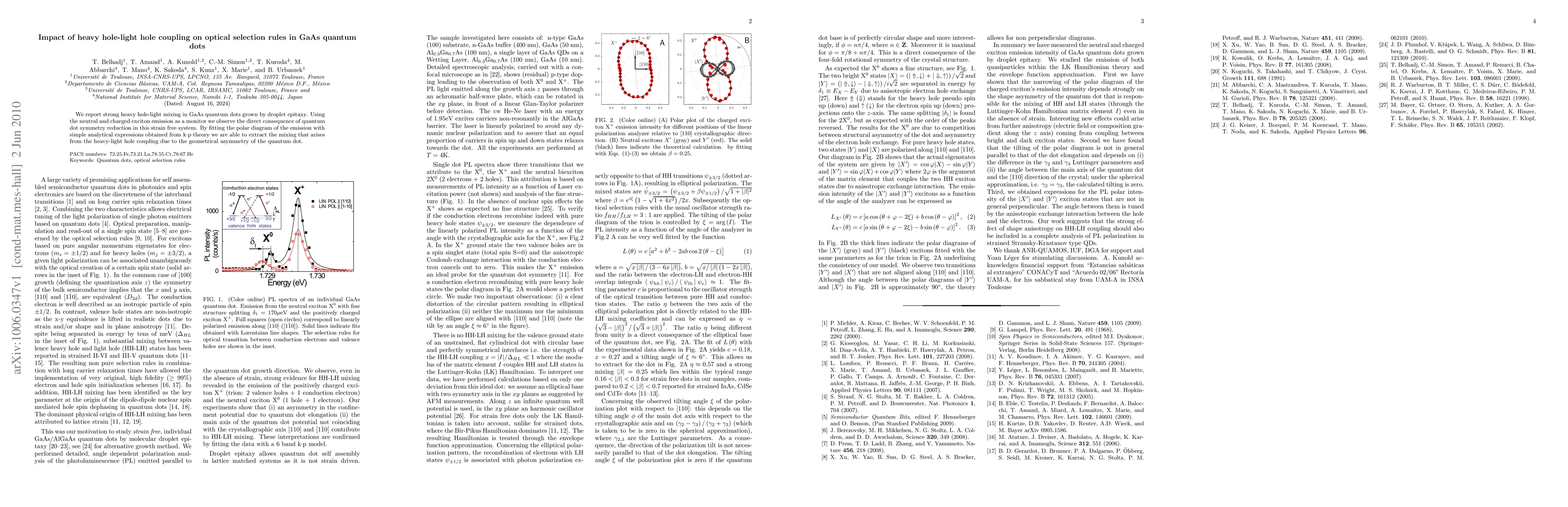 This study investigates the strong heavy hole-light hole coupling in GaAs quantum dots, revealing its impact on optical selection rules through neutral and charged exciton emissions. The findings highlight the effect of quantum dot symmetry reduction and geometrical asymmetry on the mixing, derived from k$\cdot$p theory.