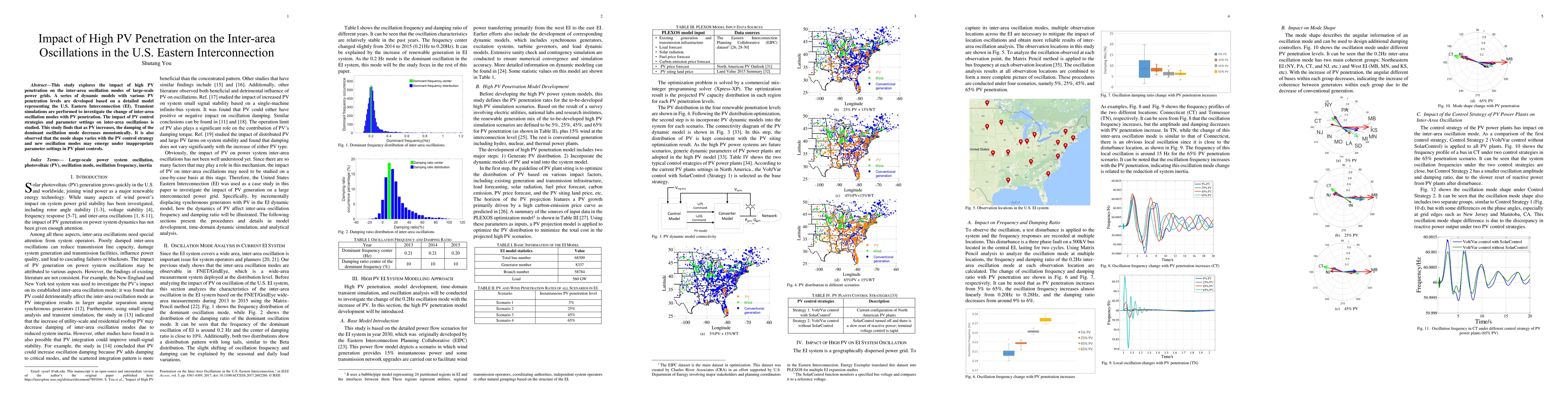 This study investigates how high penetration of photovoltaic (PV) systems affects inter-area oscillations in the U.S. Eastern Interconnection, finding that increased PV leads to reduced damping and potential emergence of new oscillation modes, depending on PV control strategies and parameter settings.