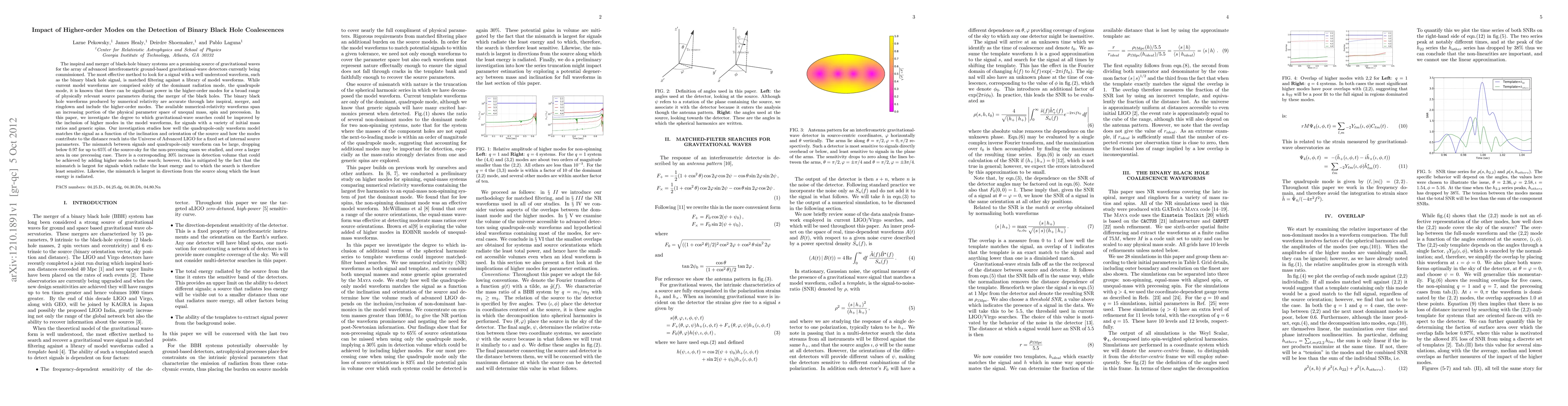The inspiral and merger of black-hole binary systems are a promising source of gravitational waves. The most effective method to look for a signal with a well understood waveform, such as the binary black hole signal, is matched filtering against a library of model waveforms. Current model waveforms are comprised solely of the dominant radiation mode, the quadrupole mode, although it is known that there can be significant power in the higher-order modes. The binary black hole waveforms produced by numerical relativity are accurate through late inspiral, merger, and ringdown and include the higher-order modes. The available numerical-relativity waveforms span an increasing portion of the physical parameter space of unequal mass, spin and precession. In this paper, we investigate the degree to which gravitational-wave searches could be improved by the inclusion of higher modes in the model waveforms, for signals with a variety of initial mass ratios and generic spins. Our investigation studies how well the quadrupole-only waveform model matches the signal as a function of the inclination and orientation of the source and how the modes contribute to the distance reach into the Universe of Advanced LIGO for a fixed set of internal source parameters. The mismatch between signals and quadrupole-only waveform can be large, dropping below 0.97 for up to 65% of the source-sky for the non-precessing cases we studied, and over a larger area in one precessing case. There is a corresponding 30% increase in detection volume that could be achieved by adding higher modes to the search; however, this is mitigated by the fact that the mismatch is largest for signals which radiate the least energy and to which the search is therefore least sensitive. Likewise, the mismatch is largest in directions from the source along which the least energy is radiated.