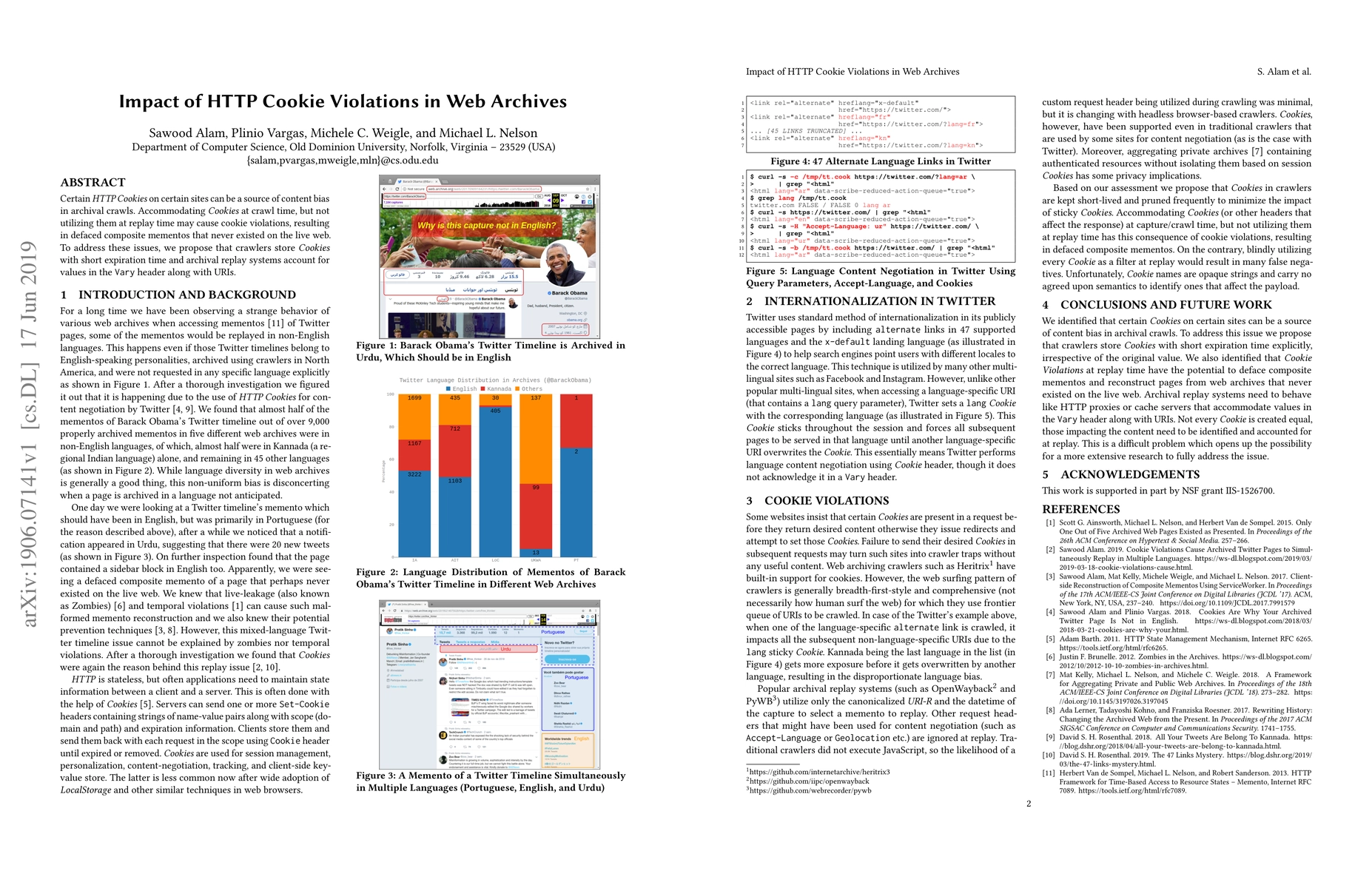 This paper discusses how HTTP cookie violations in web archives can lead to biased content and composite mementos that never existed on the live web. It proposes that crawlers should store cookies with short expiration times and that replay systems should consider values in the Vary header along with URIs.