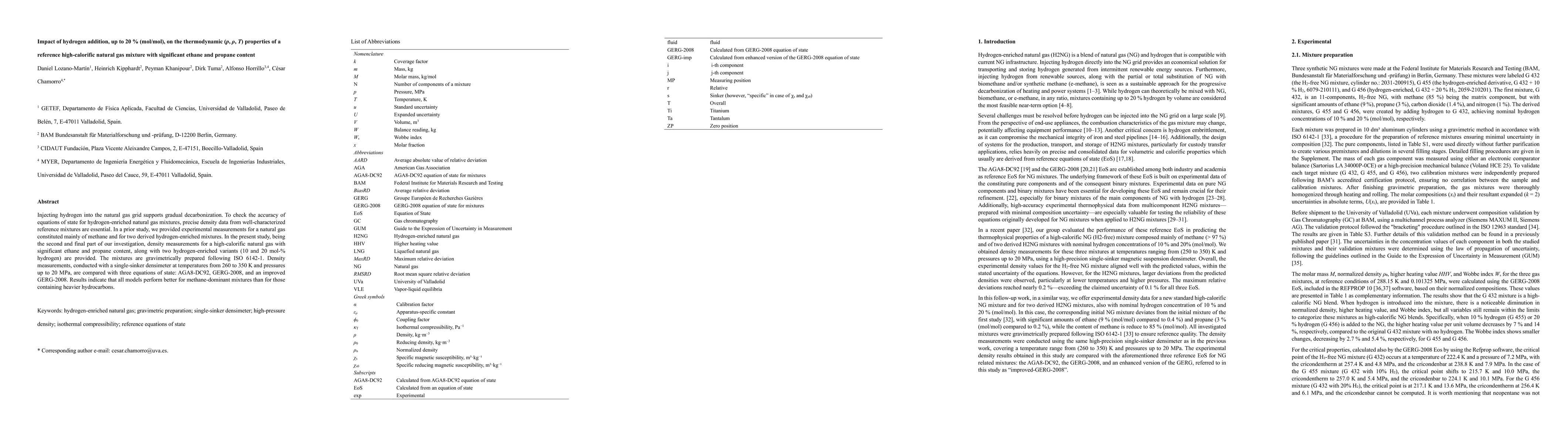 The paper presents experimental density data for hydrogen-enriched natural gas mixtures with significant ethane and propane content, enhancing the accuracy of equations of state for decarbonization modeling.