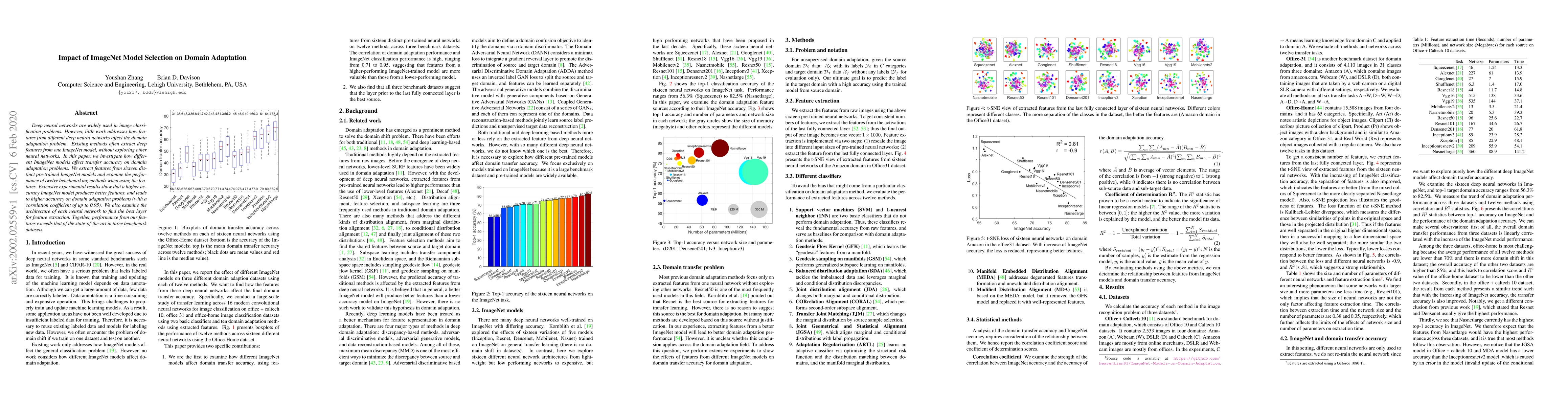 This paper explores how different pre-trained ImageNet models impact domain adaptation performance, finding that higher accuracy ImageNet models yield better features and lead to improved domain adaptation accuracy. The study identifies the optimal neural network layers for feature extraction, achieving state-of-the-art results on three benchmark datasets.