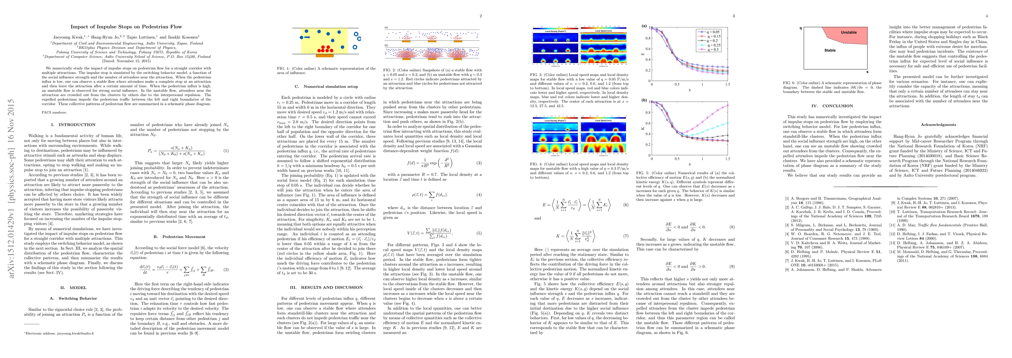 Research shows that impulse stops at attractions can cause unstable pedestrian flow when social influence is strong, leading to crowding and congestion in crowded areas.