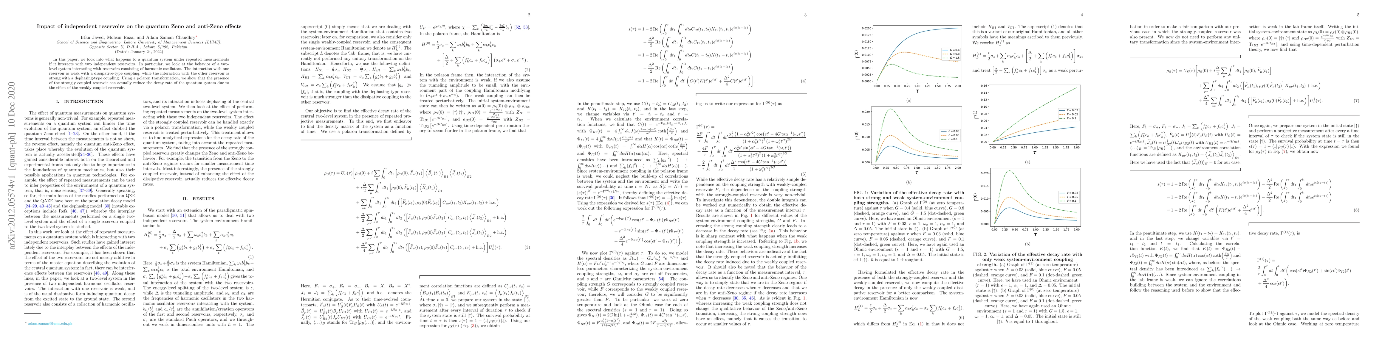 In this paper, we look into what happens to a quantum system under repeated measurements if it interacts with two independent reservoirs. In particular, we look at the behavior of a two-level system interacting with reservoirs consisting of harmonic oscillators. The interaction with one reservoir is weak with a dissipative-type coupling, while the interaction with the other reservoir is strong with a dephasing-type coupling. Using a polaron transformation, we show that the presence of the strongly coupled reservoir can actually reduce the decay rate of the quantum system due to the effect of the weakly-coupled reservoir.