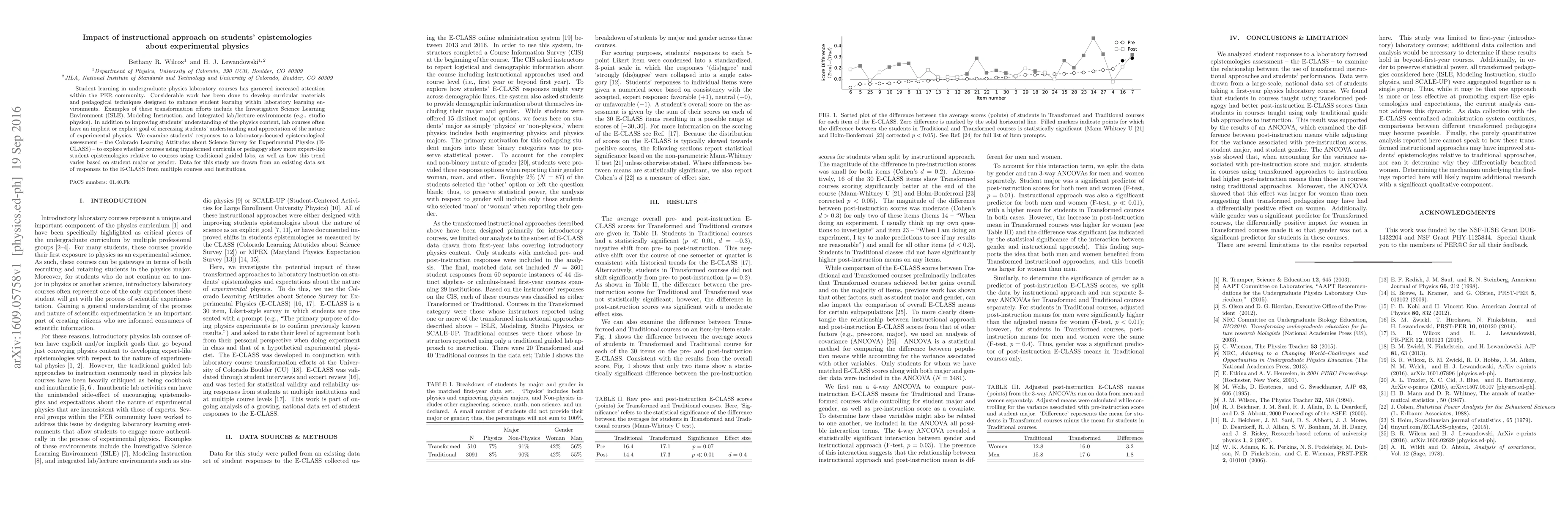 This study investigates how different instructional approaches in undergraduate physics lab courses impact students' understanding of the nature of experimental physics, using the E-CLASS survey, and explores variations in these effects based on student major and gender. Results suggest that transformed curricula and pedagogies may foster more expert-like epistemologies compared to traditional labs.