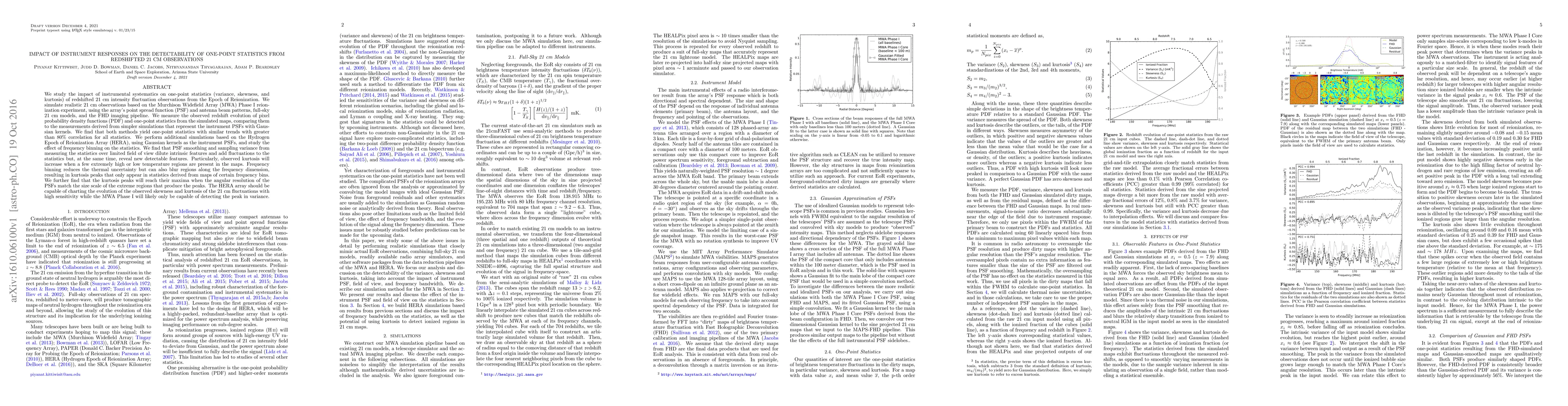 This study investigates how instrument responses affect the detectability of redshifted 21 cm intensity fluctuation statistics from the Epoch of Reionization. Using MWA Phase I and HERA simulations, it finds that while Gaussian-kernel PSFs closely match actual PSFs, both methods show similar trends in one-point statistics (variance, skewness, kurtosis) with over 80% correlation. PSF smoothing and sampling variance introduce fluctuations, but also reveal new detectable features. Frequency binning reduces thermal uncertainty but may blur regions along the frequency dimension, causing kurtosis peaks visible only in specific bins. The research concludes that HERA can precisely chart skewness and kurtosis evolution, while MWA Phase I is expected to detect the variance peak.