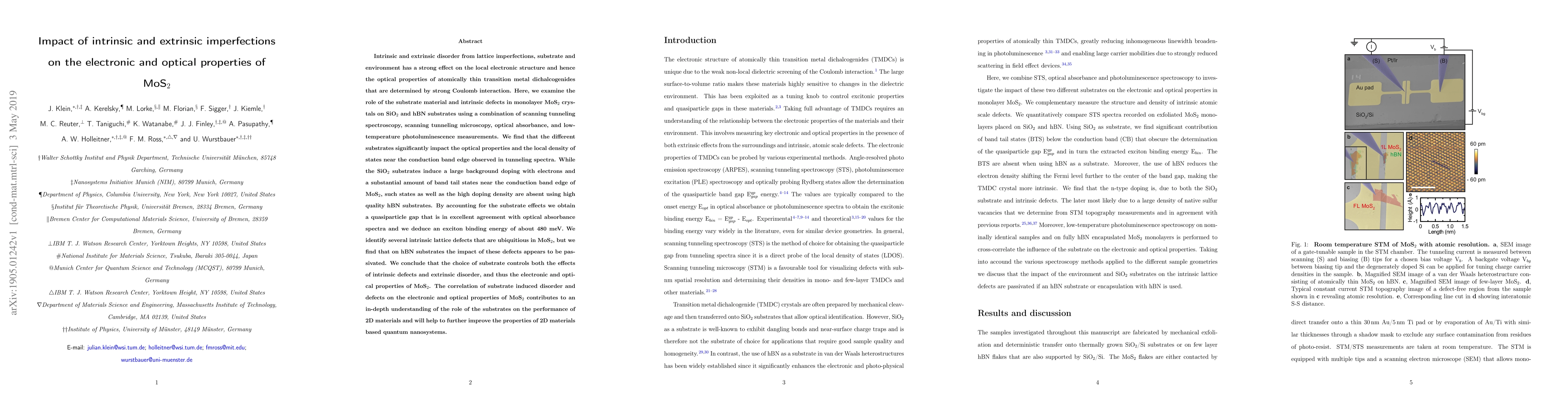 Intrinsic and extrinsic disorder from lattice imperfections, substrate and environment has a strong effect on the local electronic structure and hence the optical properties of atomically thin transition metal dichalcogenides that are determined by strong Coulomb interaction. Here, we examine the role of the substrate material and intrinsic defects in monolayer MoS2 crystals on SiO2 and hBN substrates using a combination of scanning tunneling spectroscopy, scanning tunneling microscopy, optical absorbance, and low-temperature photoluminescence measurements. We find that the different substrates significantly impact the optical properties and the local density of states near the conduction band edge observed in tunneling spectra. While the SiO2 substrates induce a large background doping with electrons and a substantial amount of band tail states near the conduction band edge of MoS2, such states as well as the high doping density are absent using high quality hBN substrates. By accounting for the substrate effects we obtain a quasiparticle gap that is in excellent agreement with optical absorbance spectra and we deduce an exciton binding energy of about 480 meV. We identify several intrinsic lattice defects that are ubiquitious in MoS2, but we find that on hBN substrates the impact of these defects appears to be passivated. We conclude that the choice of substrate controls both the effects of intrinsic defects and extrinsic disorder, and thus the electronic and optical properties of MoS2. The correlation of substrate induced disorder and defects on the electronic and optical properties of MoS2 contributes to an in-depth understanding of the role of the substrates on the performance of 2D materials and will help to further improve the properties of 2D materials based quantum nanosystems.