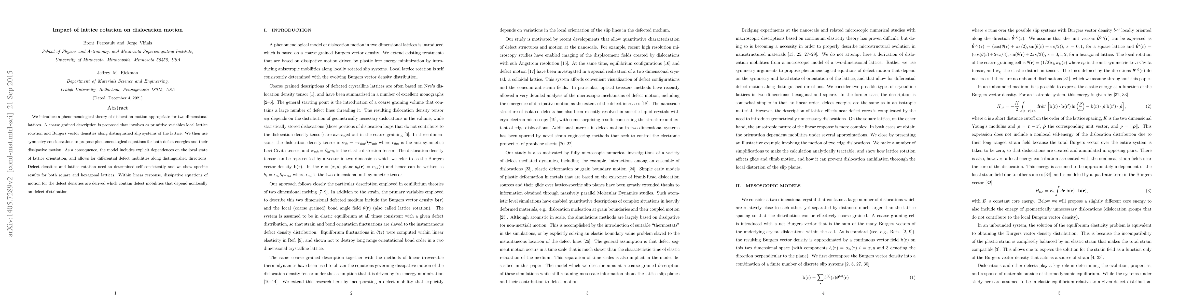 A new model describes dislocation motion in 2D lattices, considering lattice rotation and Burgers vector densities, allowing for differential defect mobilities along specific directions.