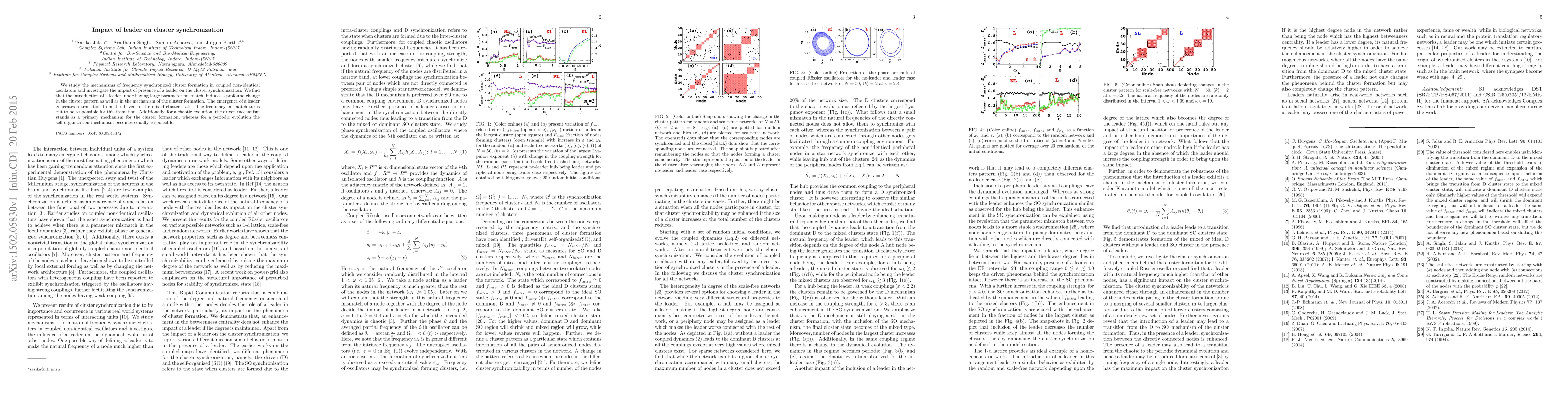 We study the mechanisms of frequency synchronized cluster formation in coupled non-identical oscillators and investigate the impact of presence of a leader on the cluster synchronization. We find that the introduction of a leader, node having large parameter mismatch, induces a profound change in the cluster pattern as well as in the mechanism of the cluster formation. The emergence of a leader generates a transition from the driven to the mixed cluster state. The frequency mismatch turns out to be responsible for this transition. Additionally, for a chaotic evolution, the driven mechanism stands as a primary mechanism for the cluster formation, whereas for a periodic evolution the self-organization mechanism becomes equally responsible.